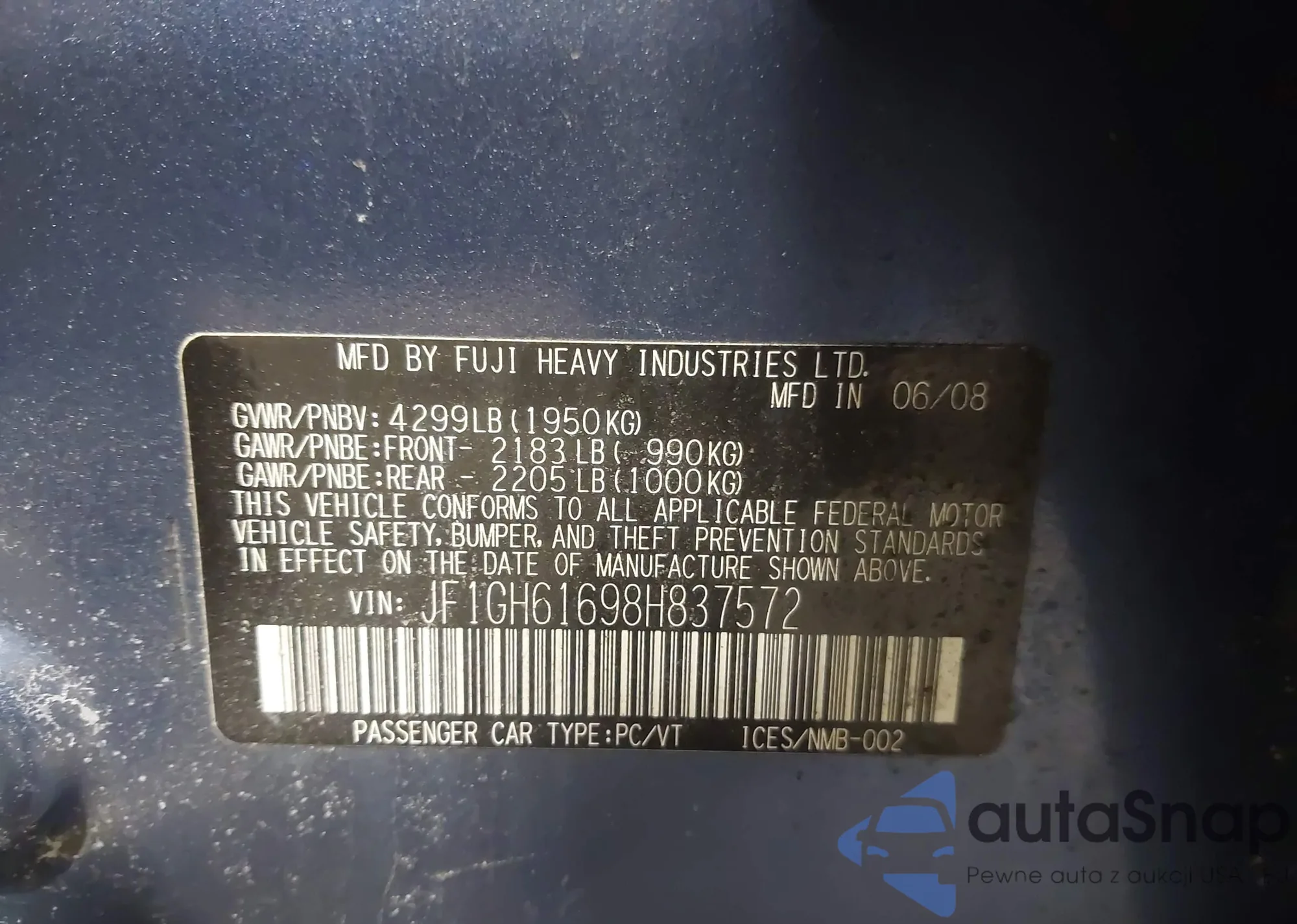 LOT: 41457817 VIN: JF1GH61698H837572