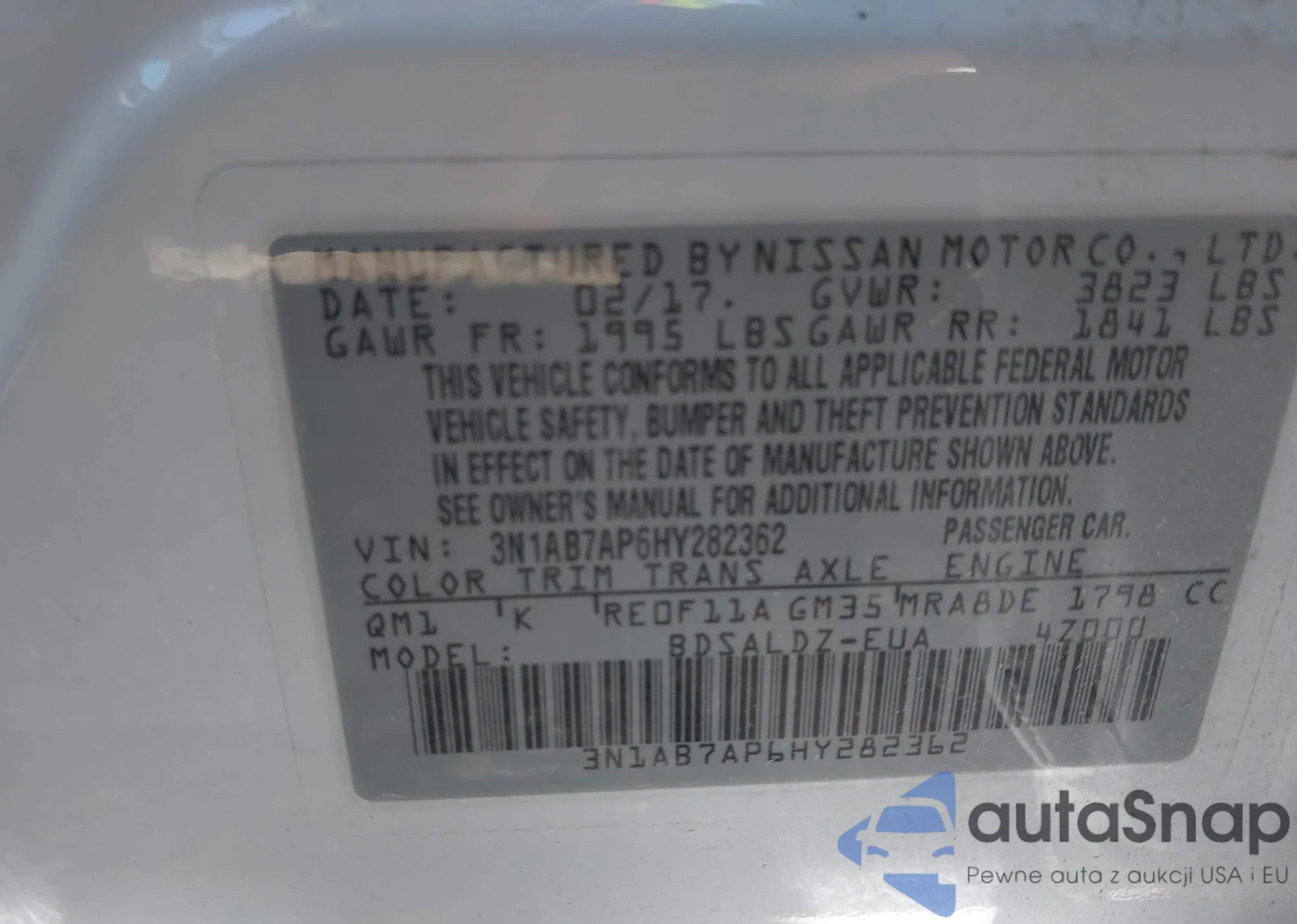 LOT: 42503177 VIN: 3N1CE2CP9FL436668
