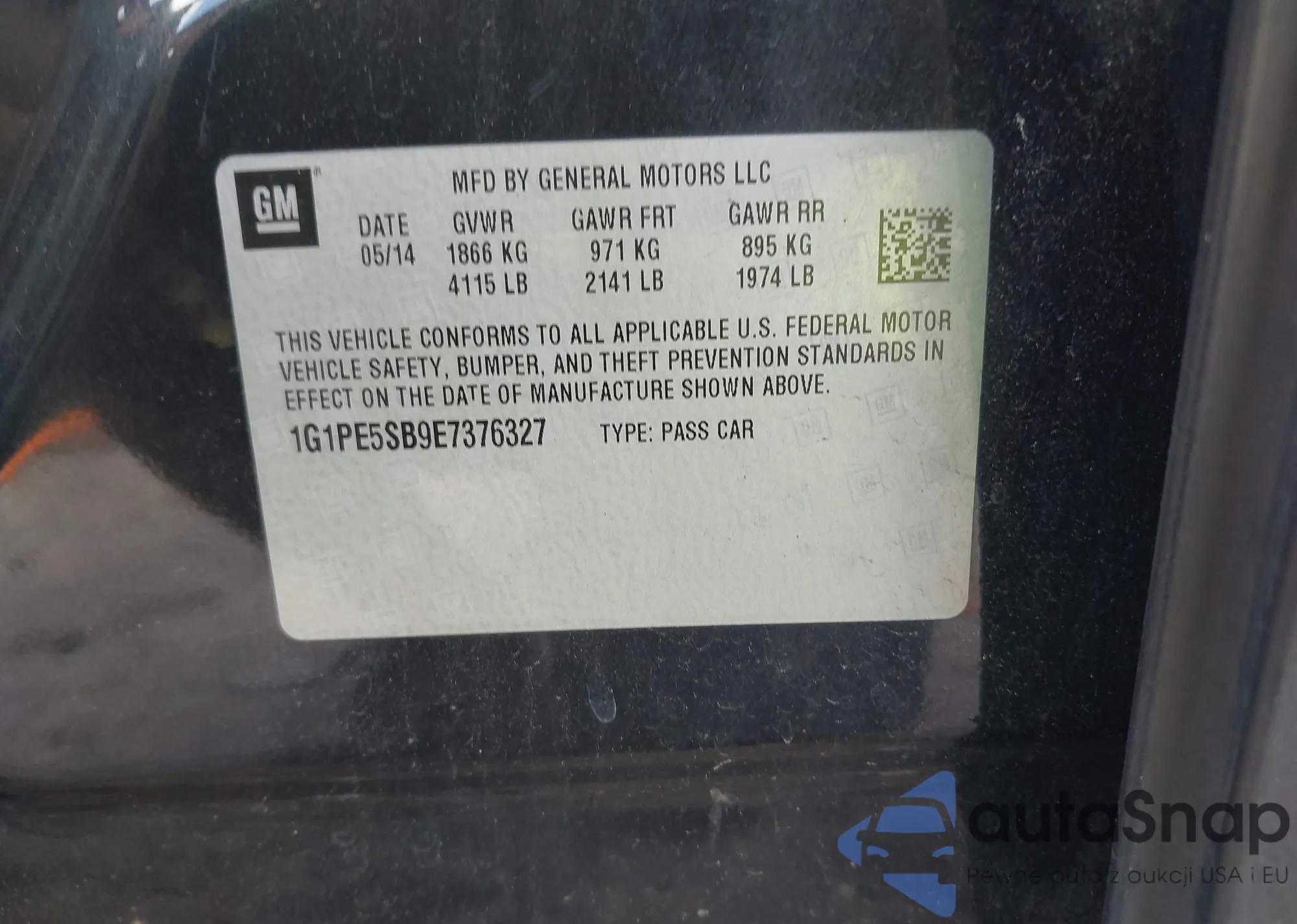 LOT: 42534588 VIN: 1G1PE5SB9E7376327