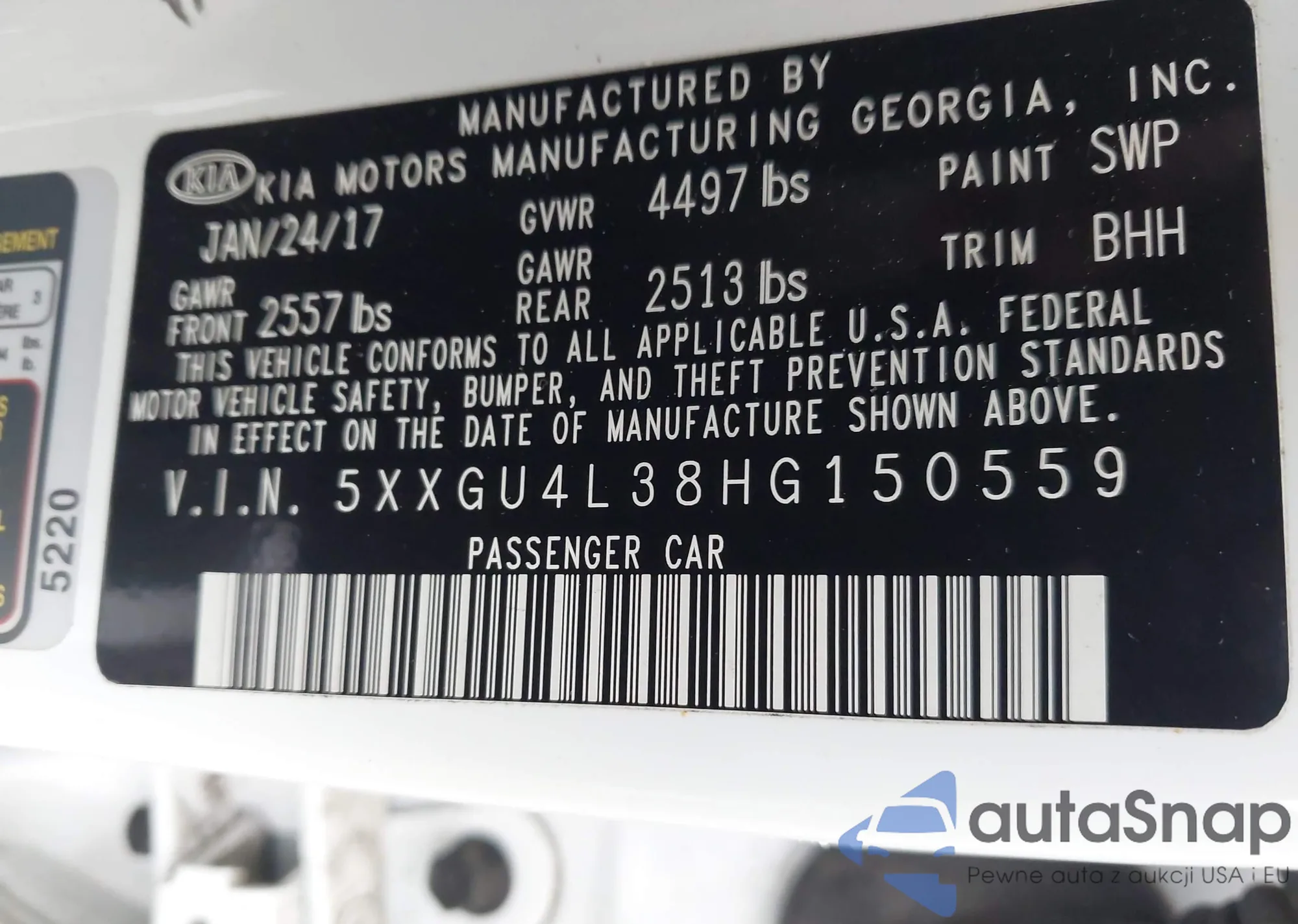• VIN 5XXGU4L38HG150559