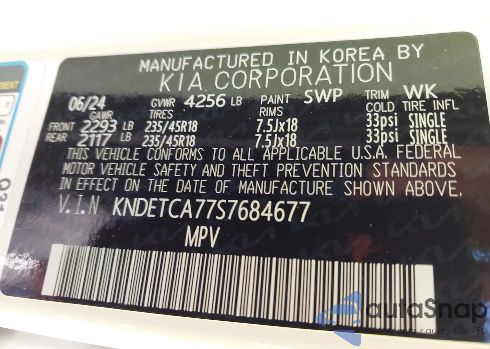 LOT: 42775936 VIN: KNDETCA77S7684677