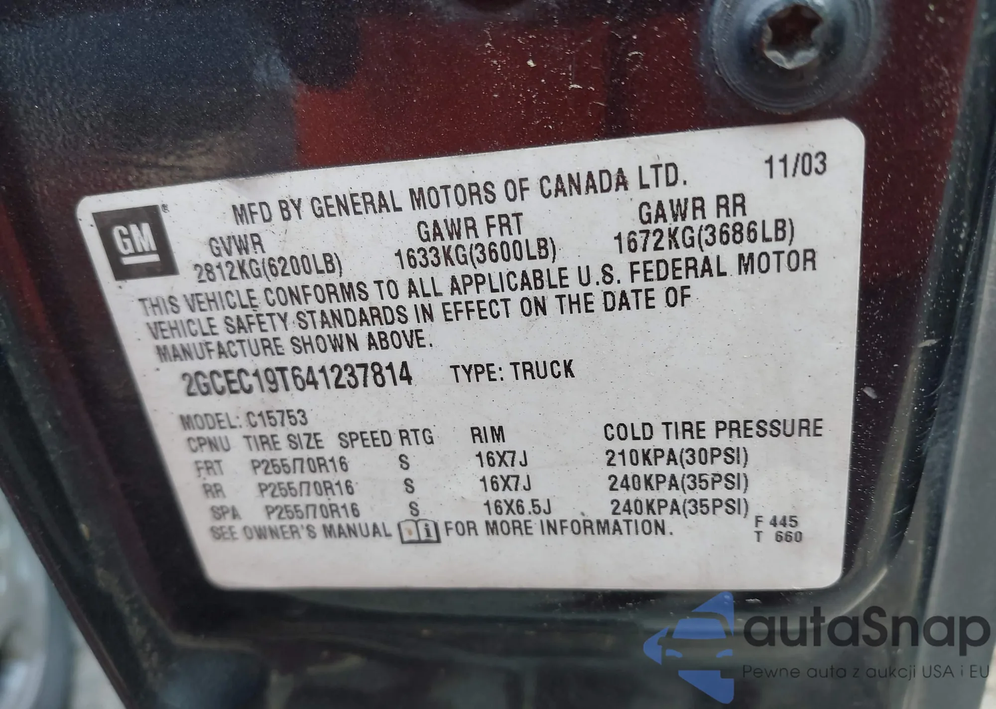 • VIN 2GCEC19T641237814