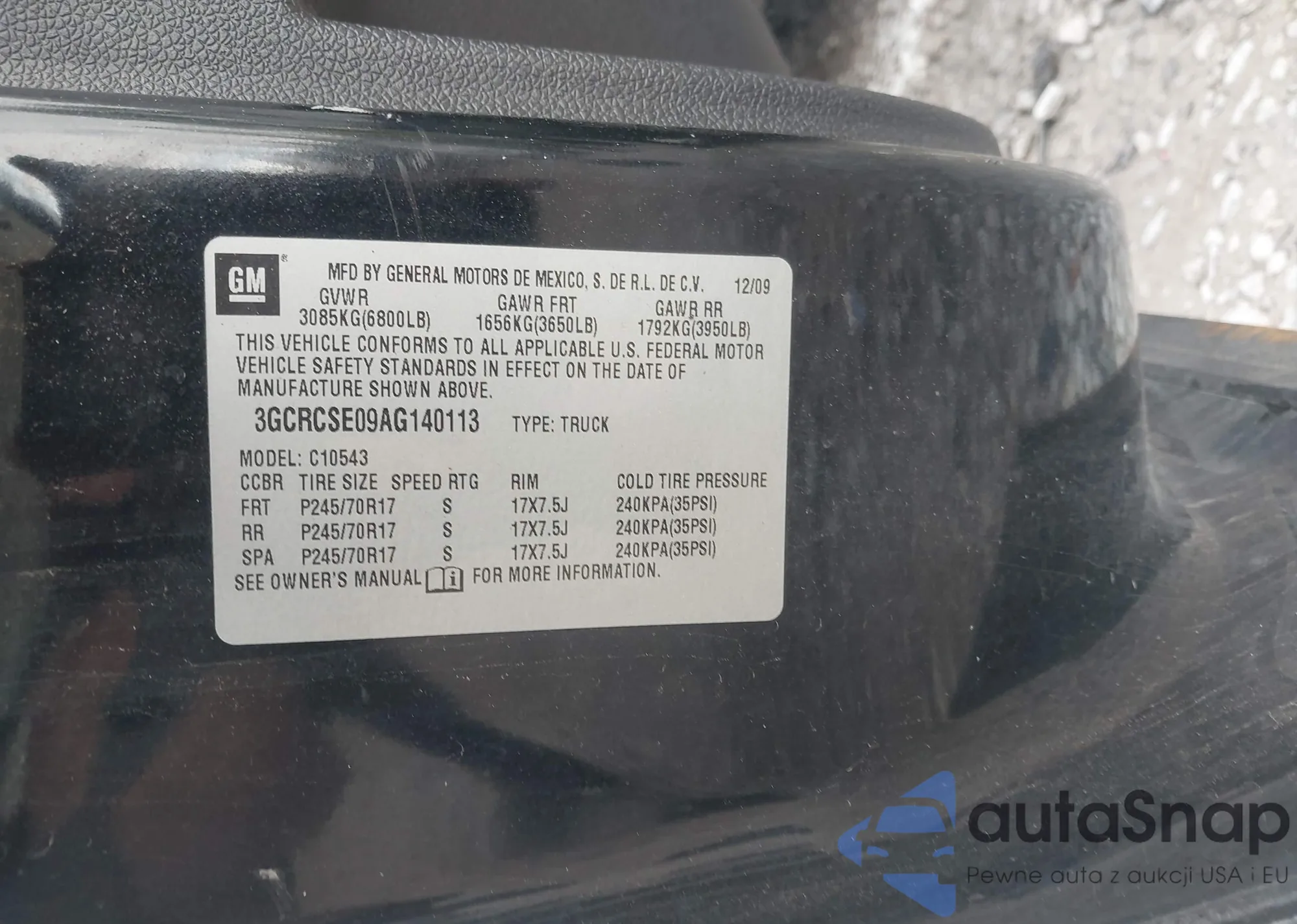 • VIN 3GCRCSE09AG140113