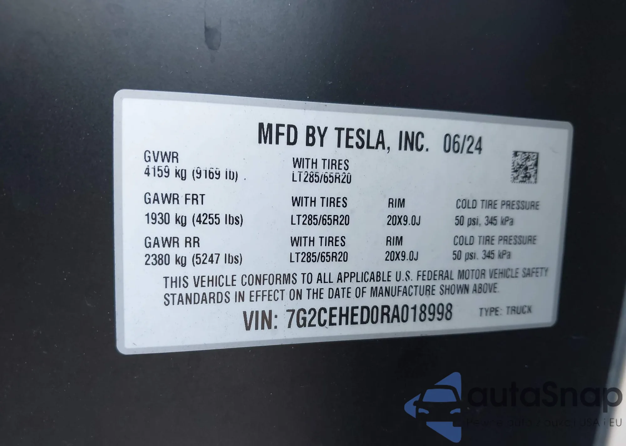 2024 Tesla Cybertruck All-Wheel Drive из США, поврежденный, VIN 7G2CEHED0RA018998