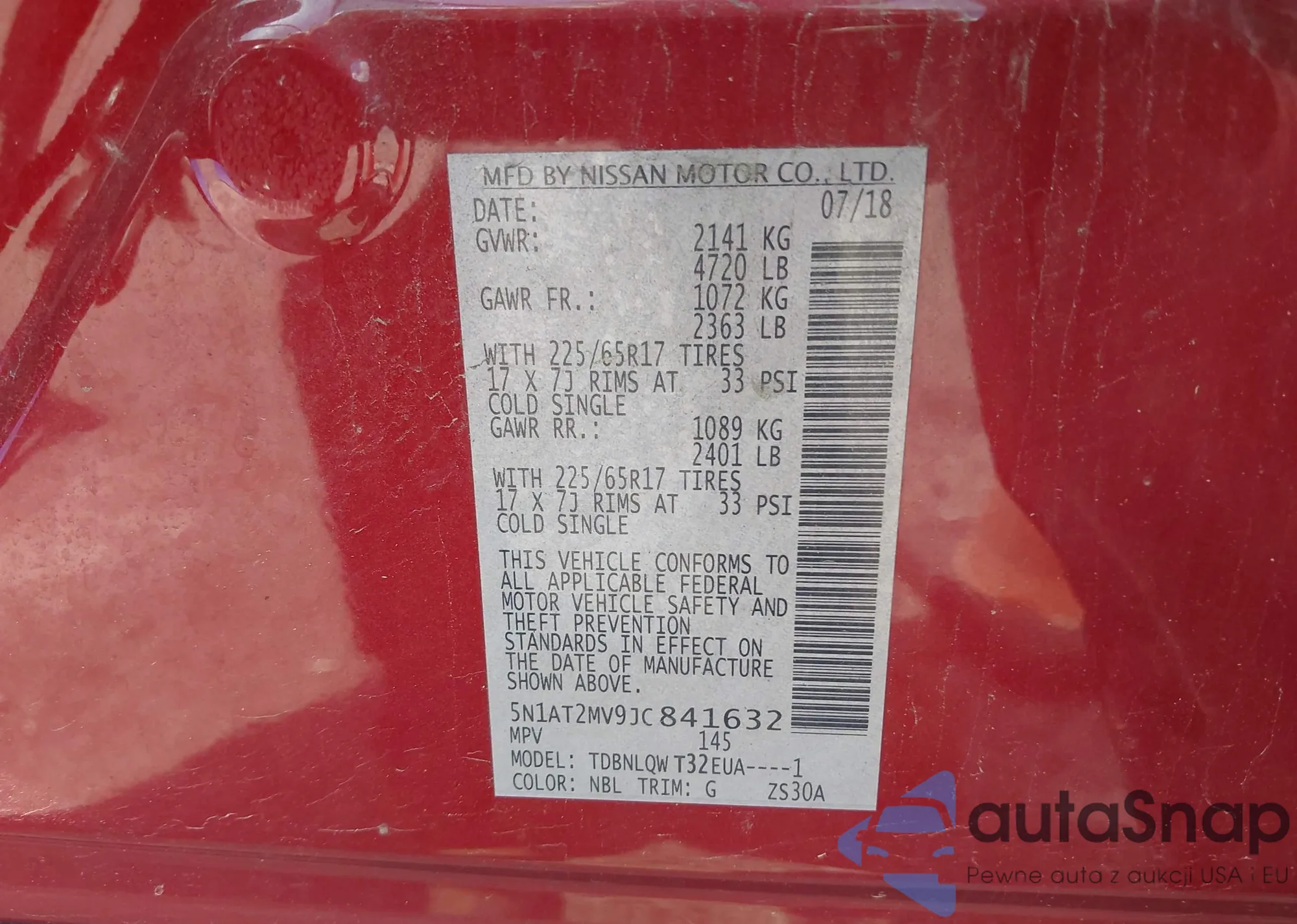LOT: 42200855 VIN: 5N1AT2MV9JC841632