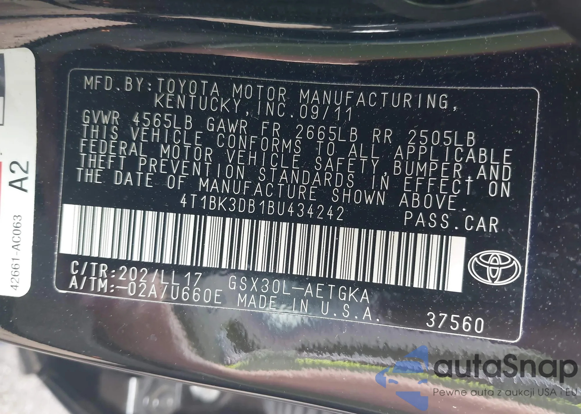 LOT: 42206248 VIN: 1J4RR5GGXBC723279