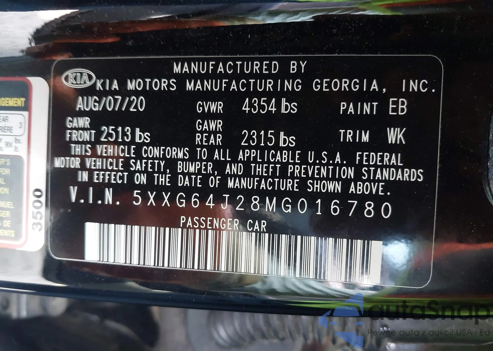 • VIN 5XXG64J28MG016780