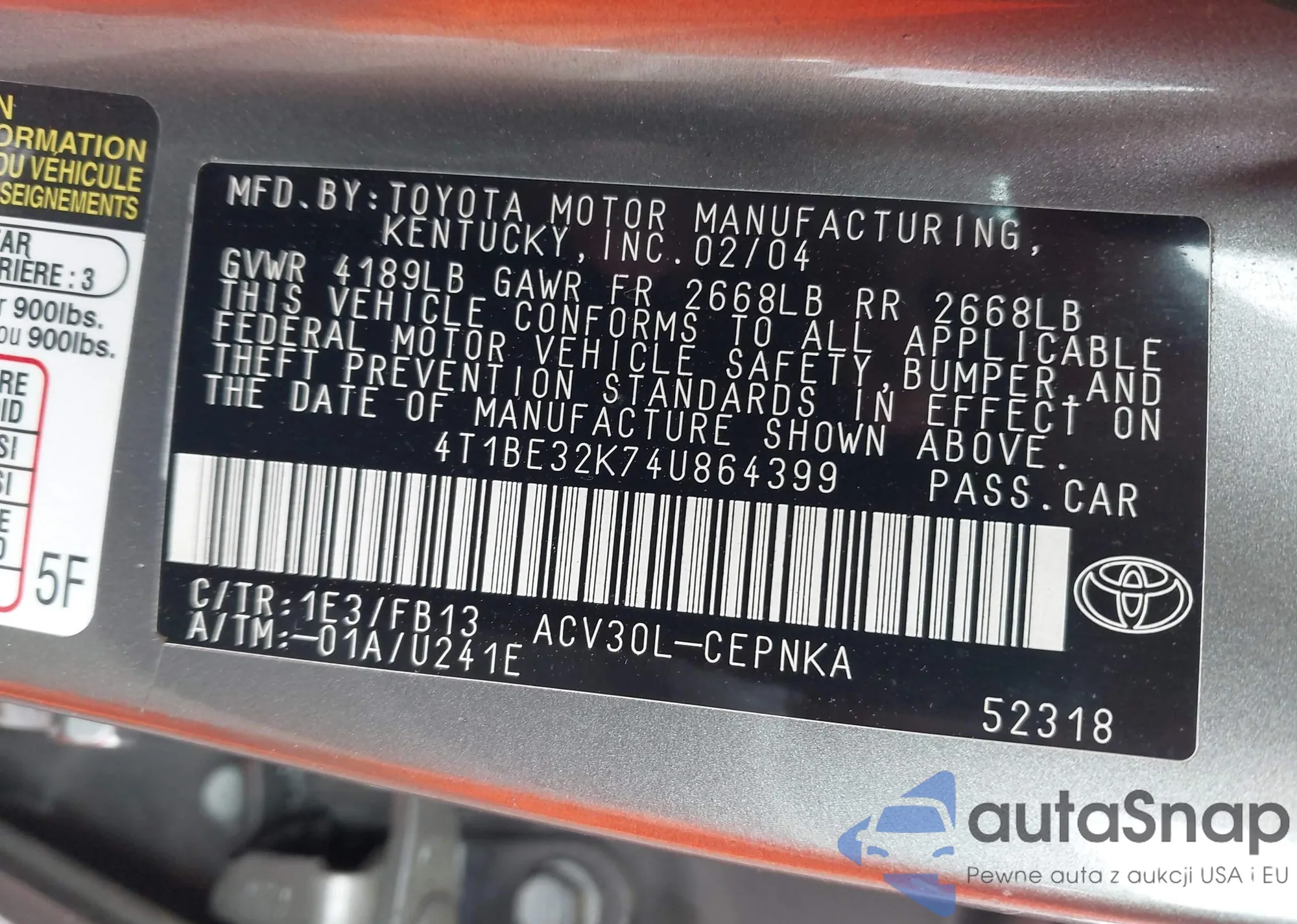 • VIN 1N4AL3AP4FC247690