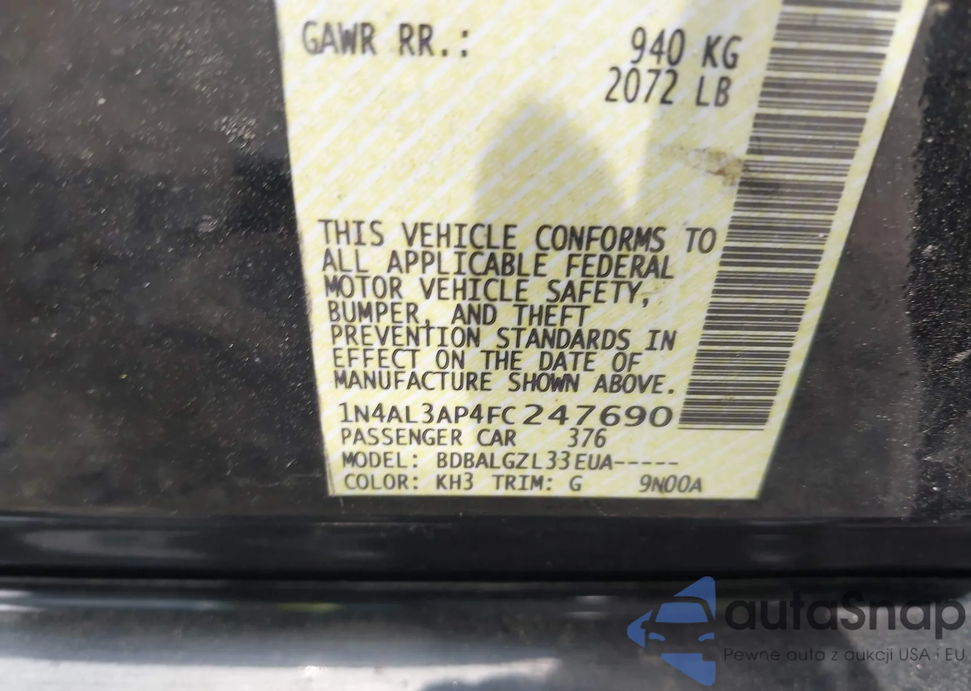 LOT: 42511689 VIN: 1N4AL3AP4FC247690