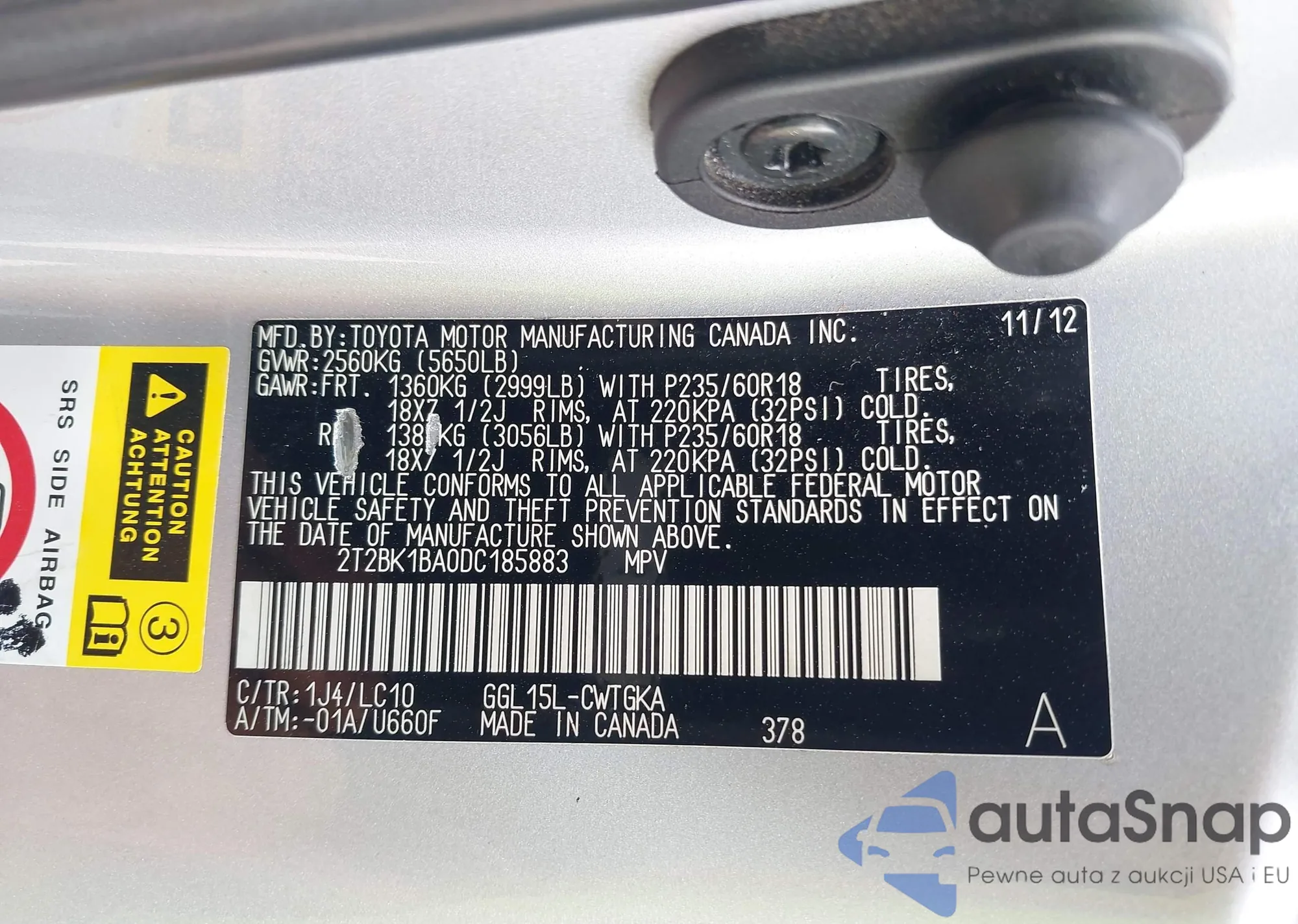LOT: 42227199 VIN: 2T2BK1BA0DC185883