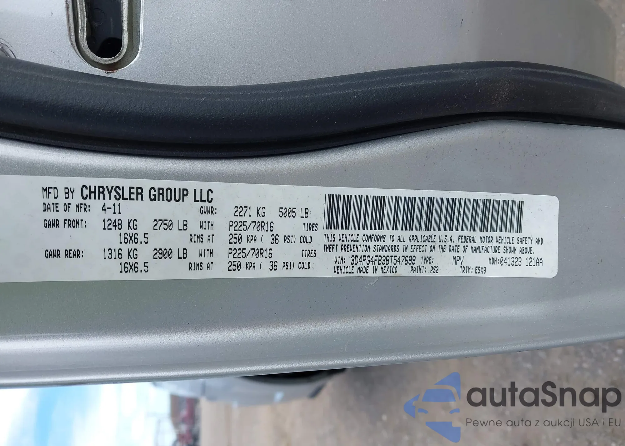 • VIN 3D4PG4FB3BT547699