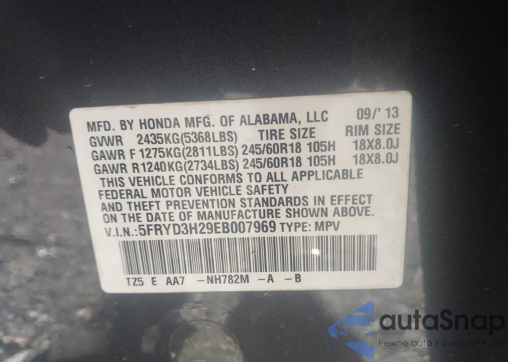 • VIN 5FRYD3H29EB007969