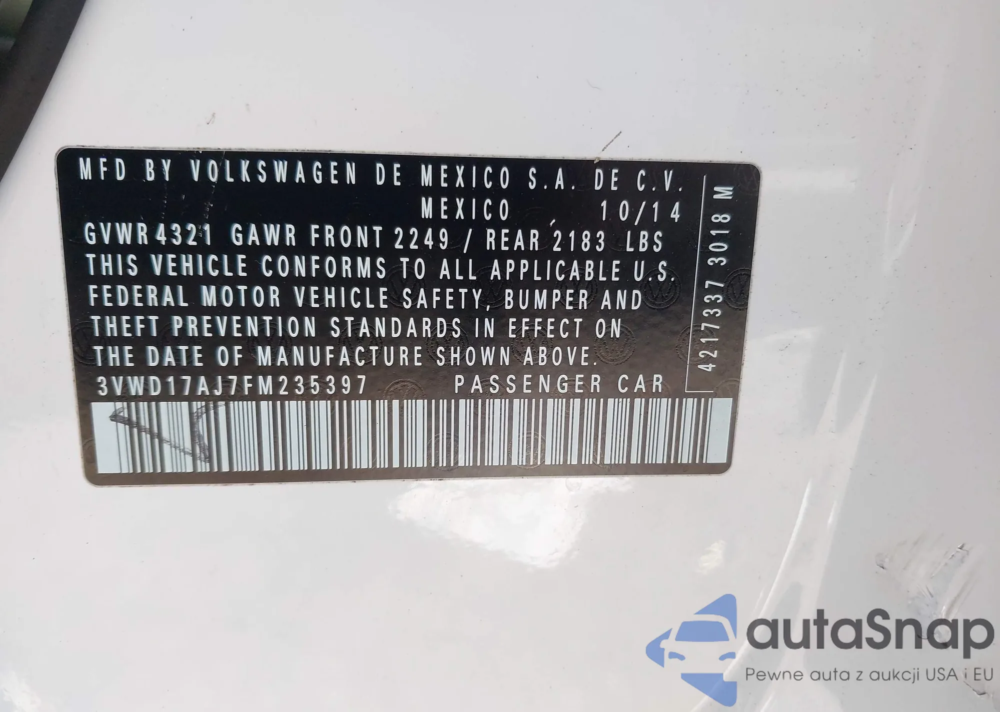• VIN 3VWD17AJ7FM235397