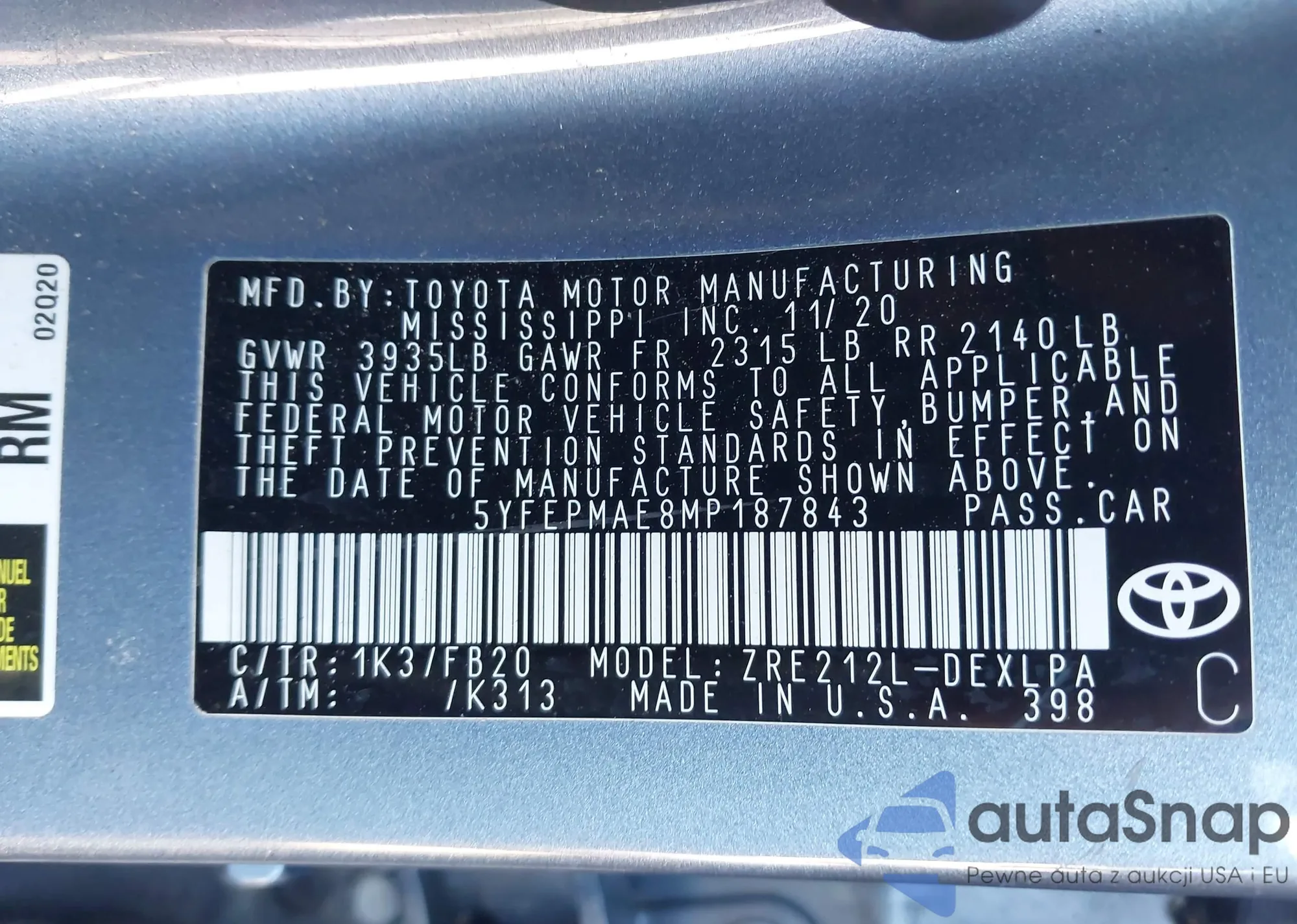 • VIN 4T1BZ1HK6JU018101