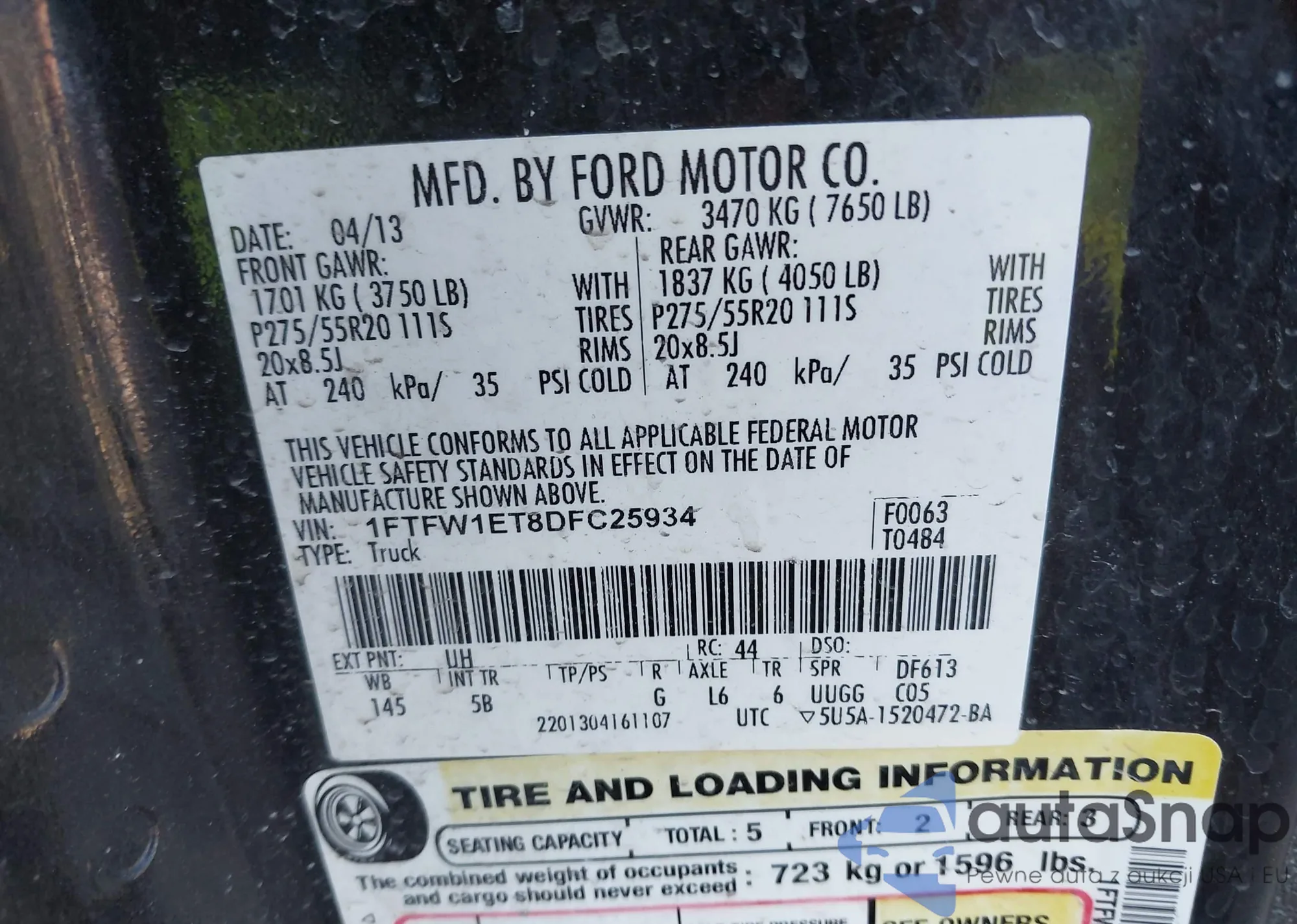 LOT: 41631942 VIN: 1FTFW1ET8DFC25934