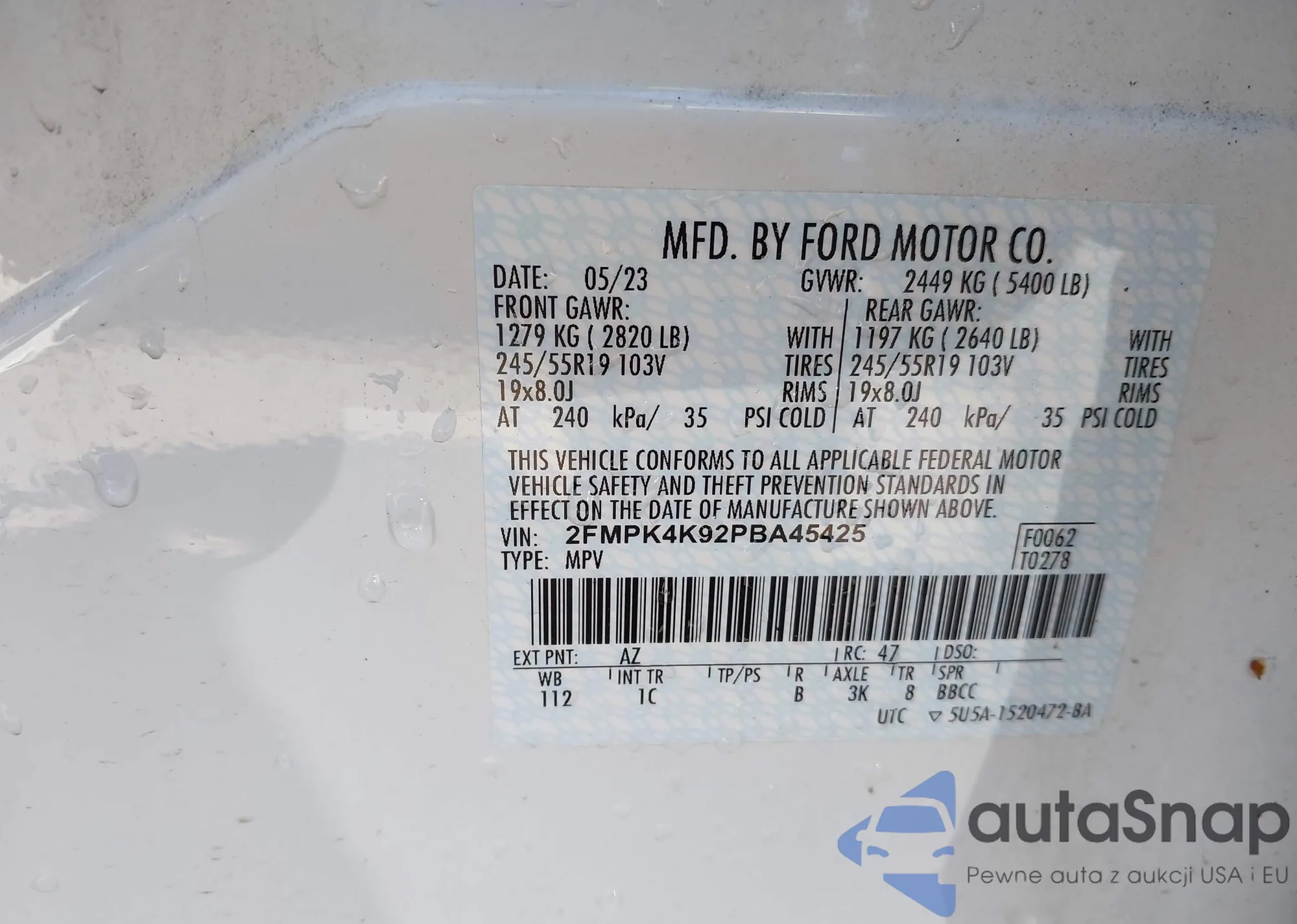 LOT: 42162819 VIN: KMUMADTB8PU136895