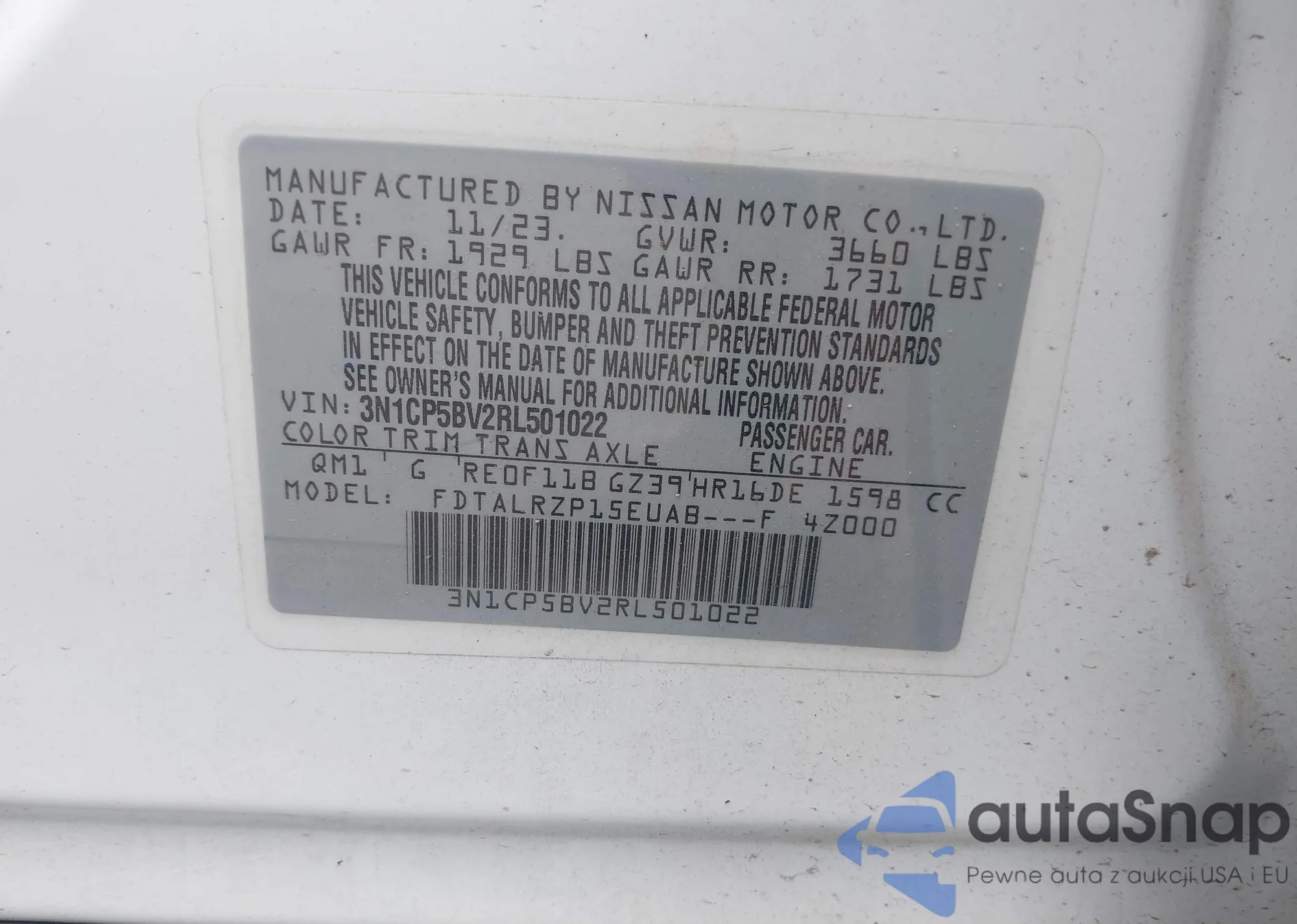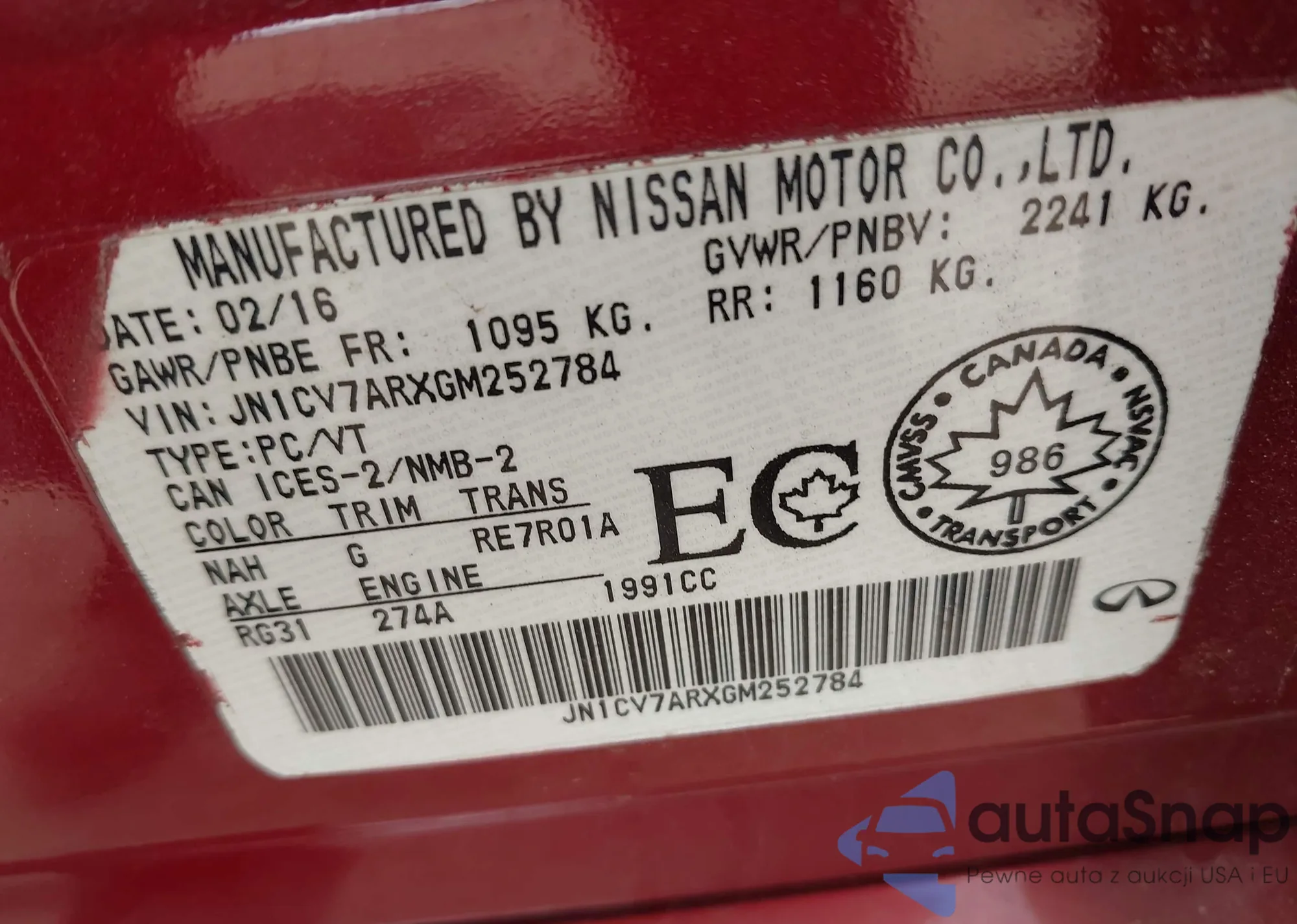 LOT: 42172802 VIN: JN1CV7ARXGM252784