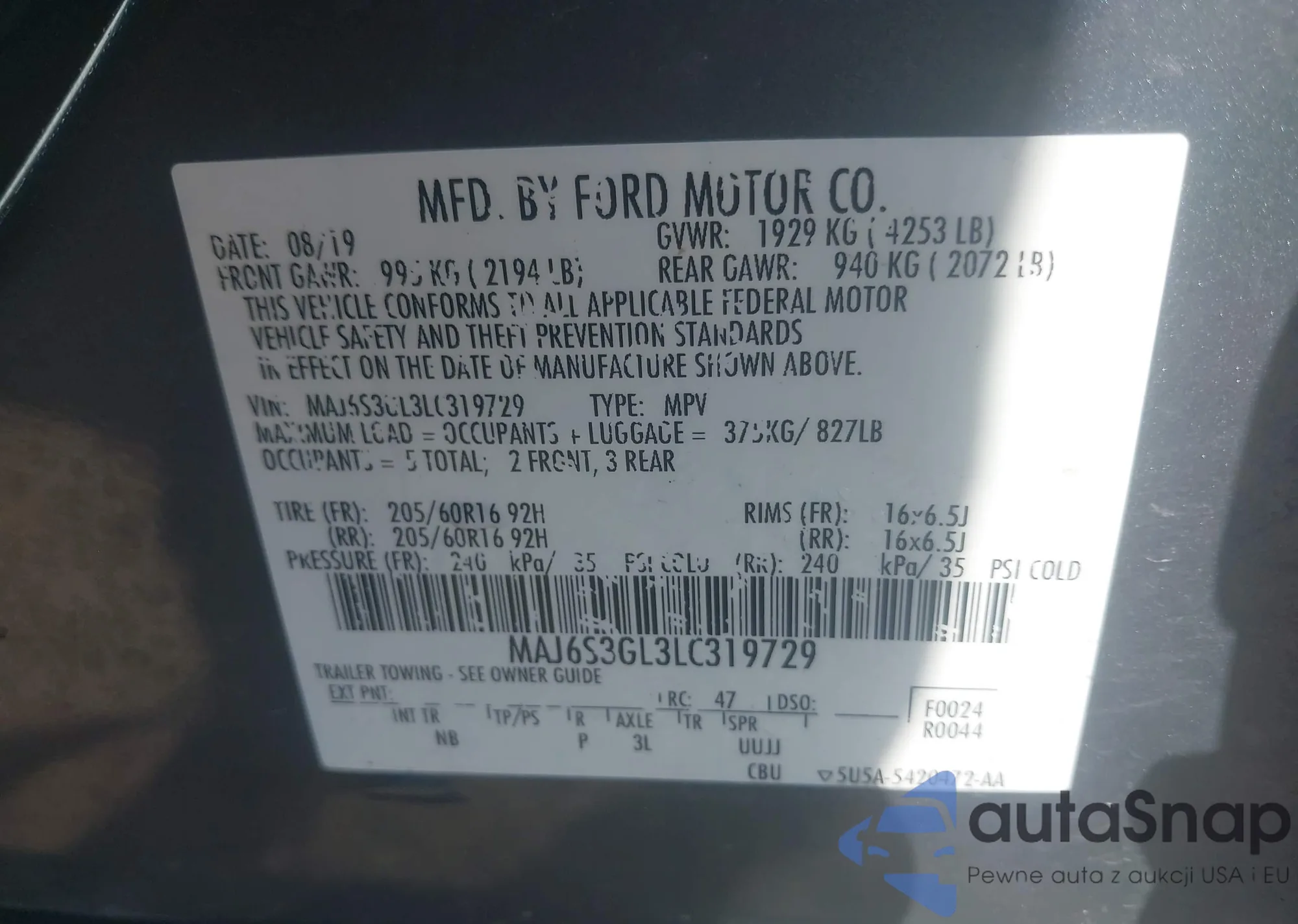 LOT: 42108819 VIN: 2LMPJ8LP6KBL25157