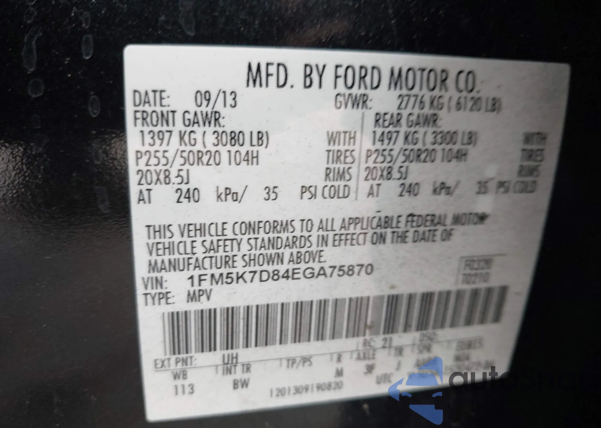 • VIN 1FM5K7D84EGA75870