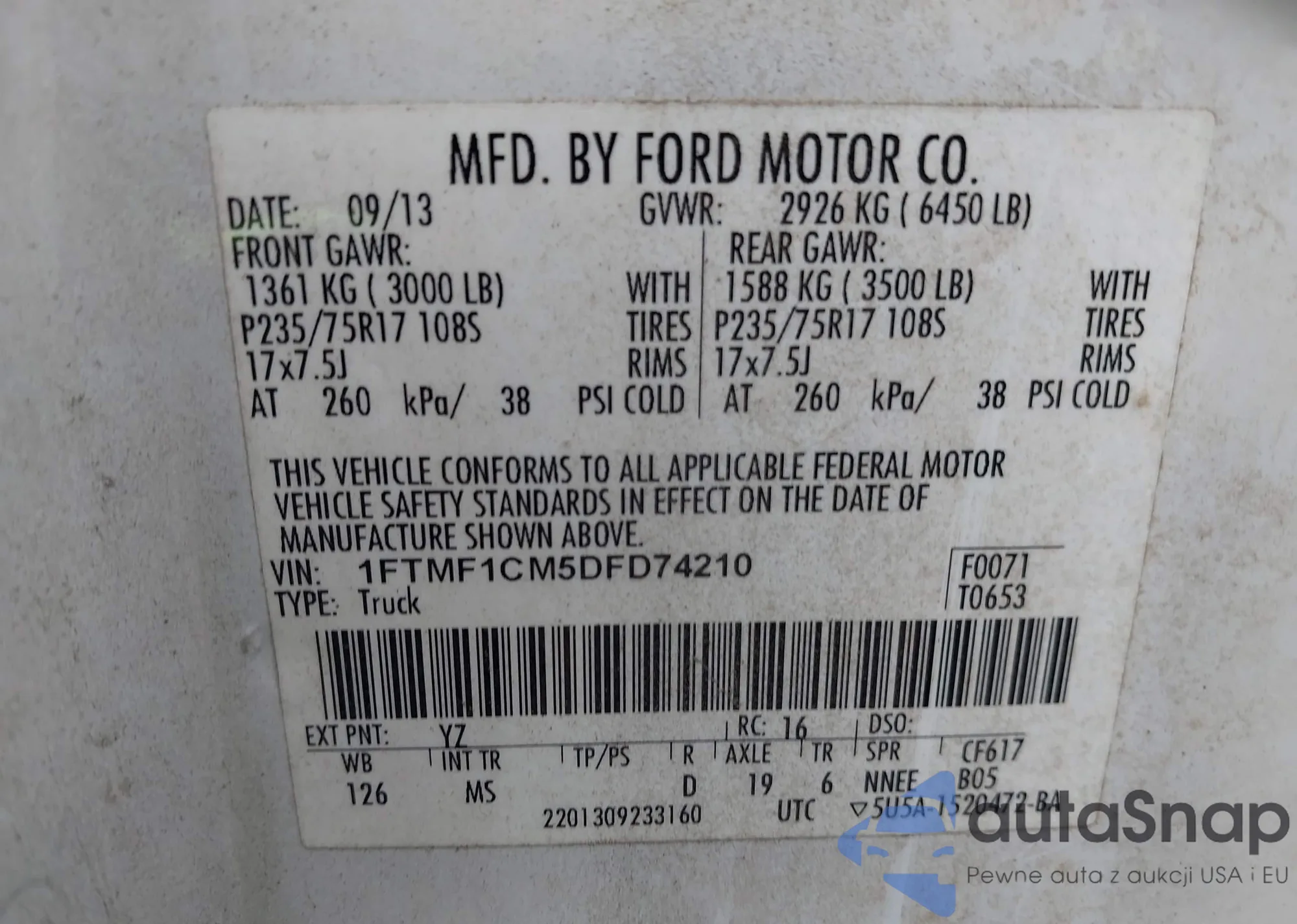 • VIN 1FTMF1CM5DFD74210