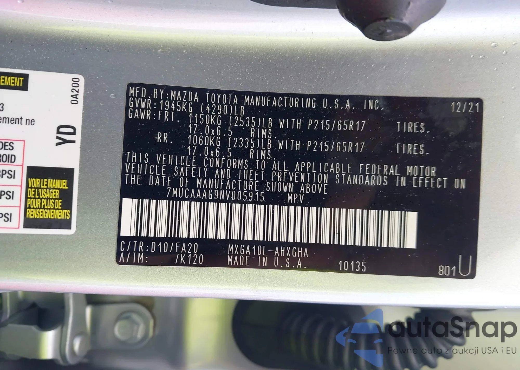 LOT: 42301769 VIN: 7MUCAAAG9NV005915
