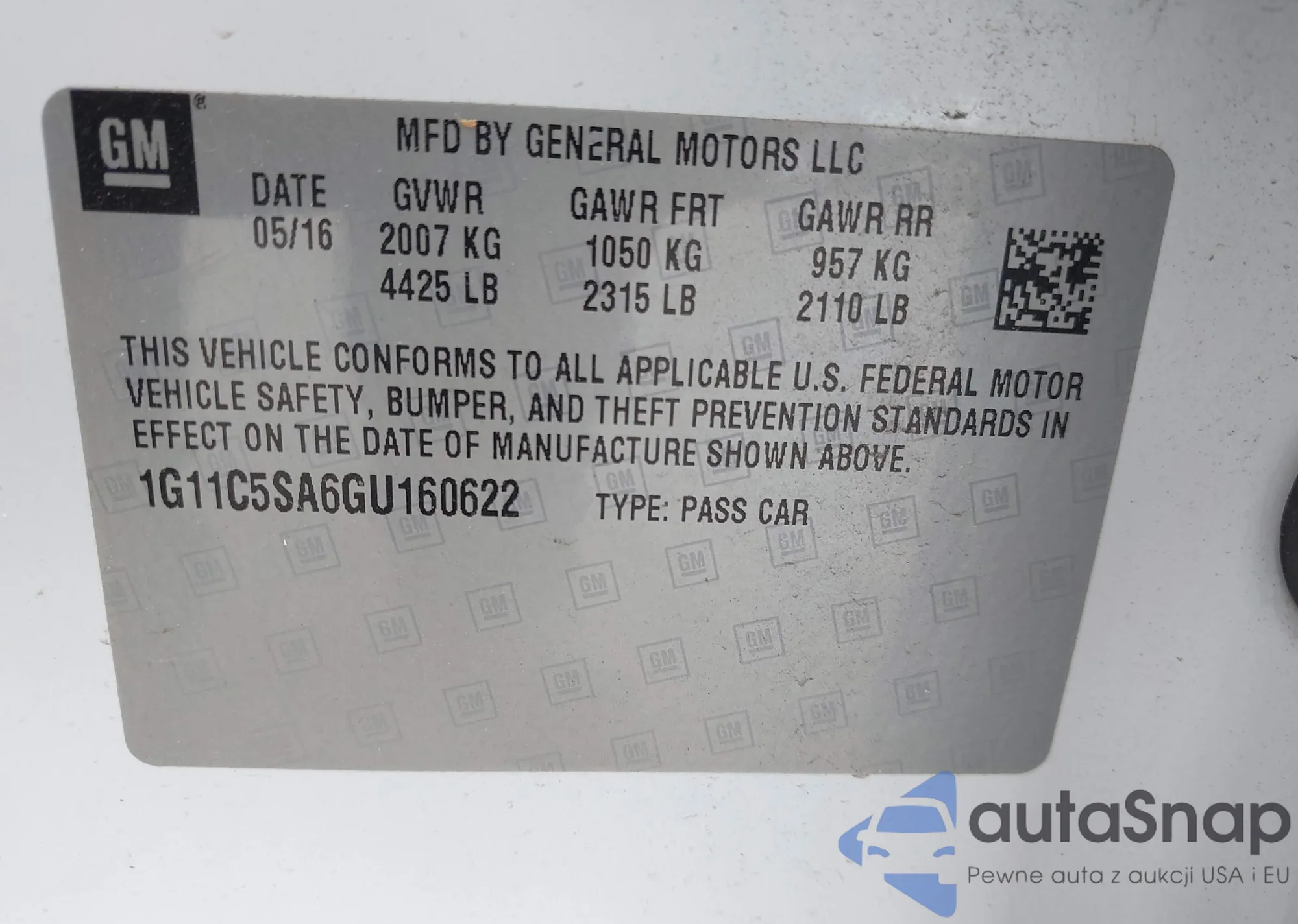LOT: 42501719 VIN: 1G11C5SA6GU160622
