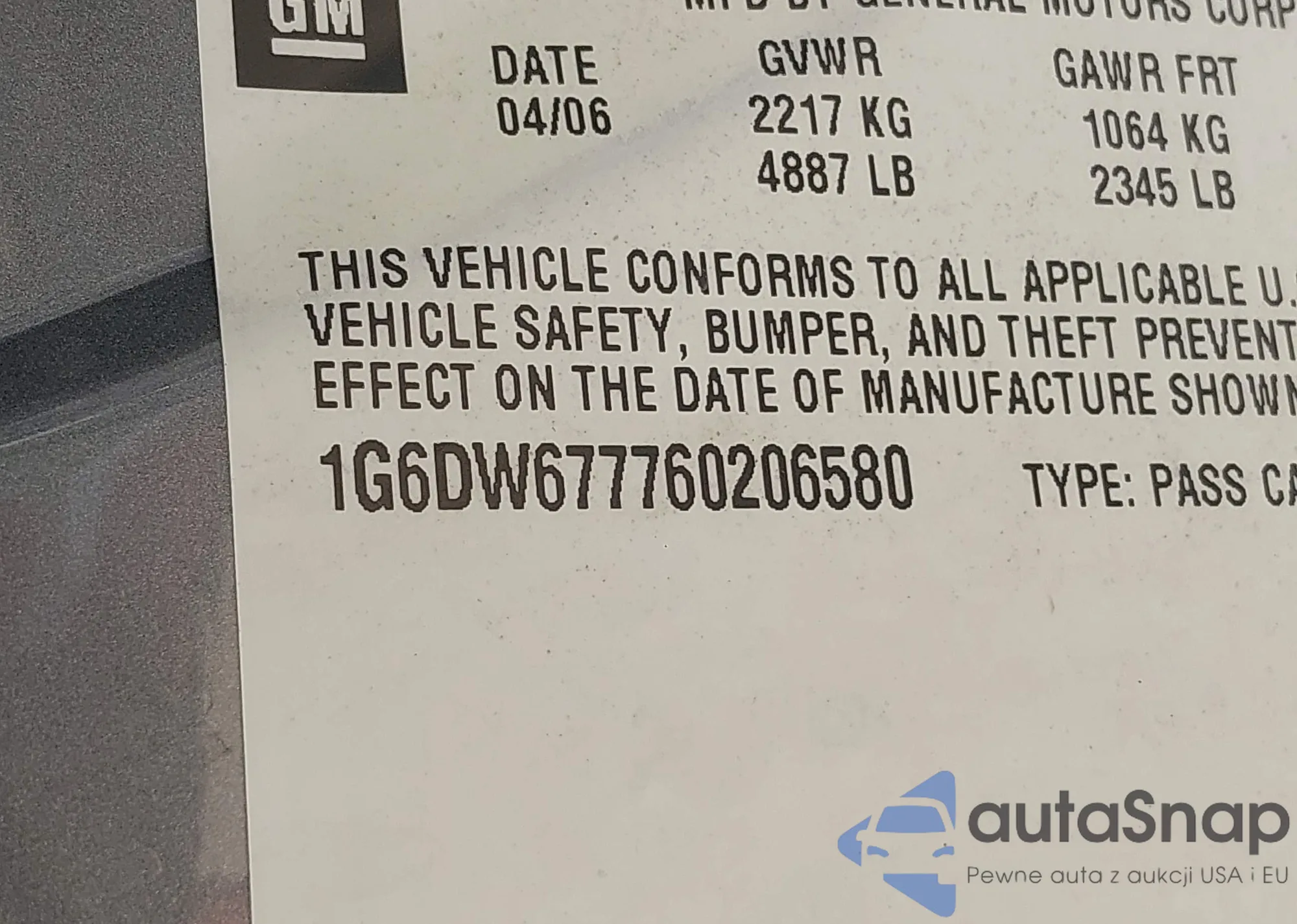 • VIN 1G6DW677760206580
