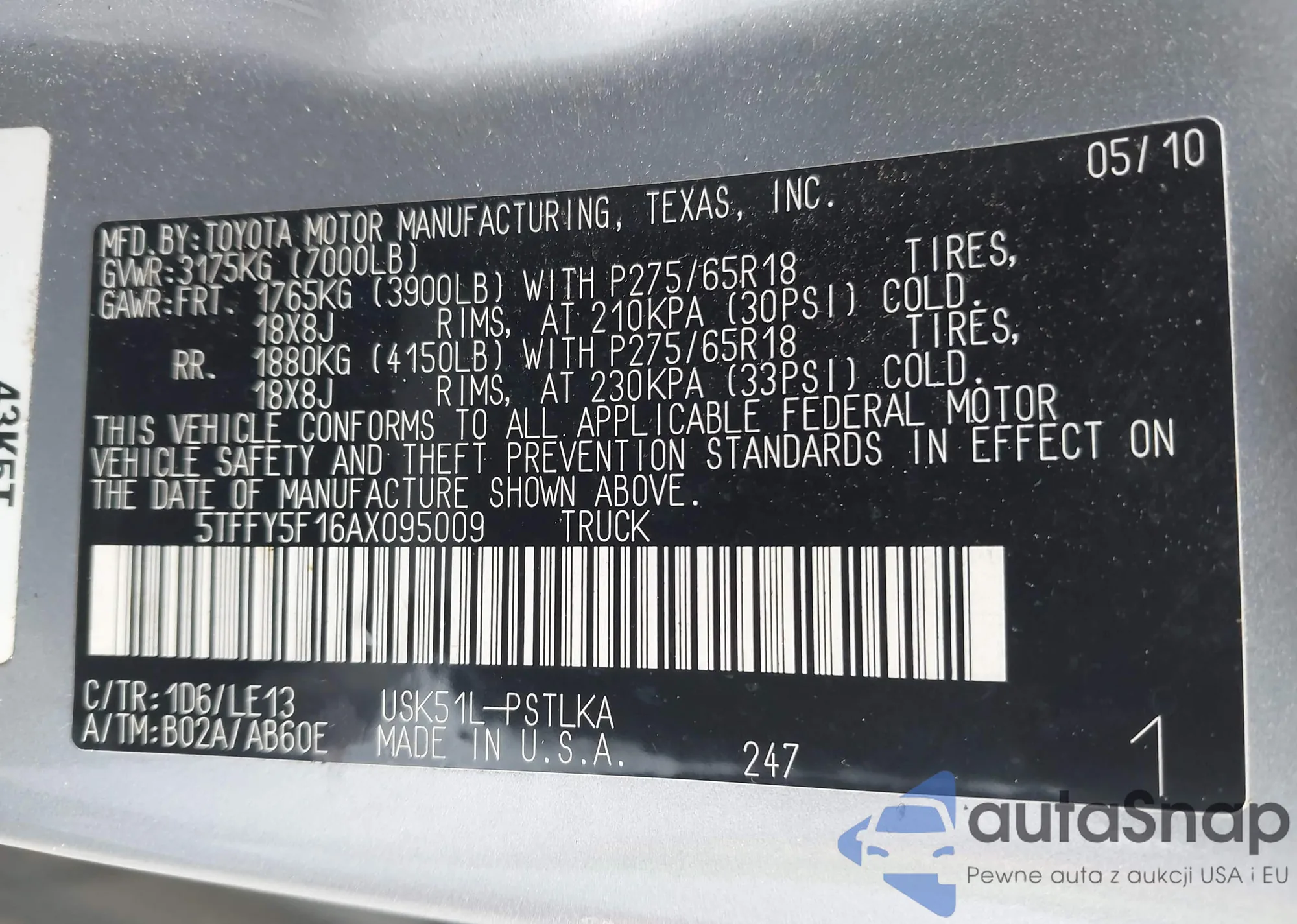 LOT: 42597714 VIN: 1FTPW12V17FA93906