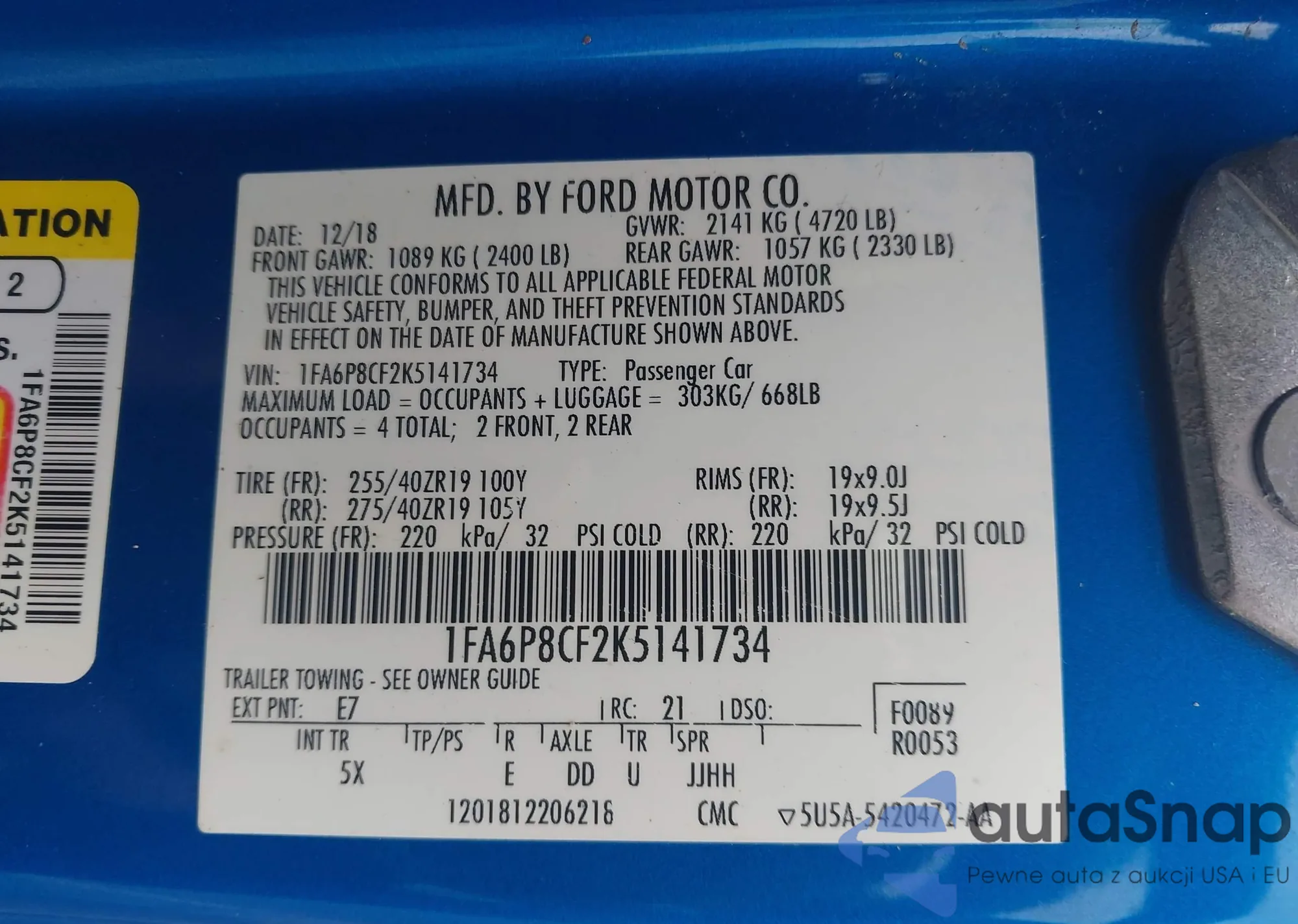 • VIN 1FA6P8CF2K5141734
