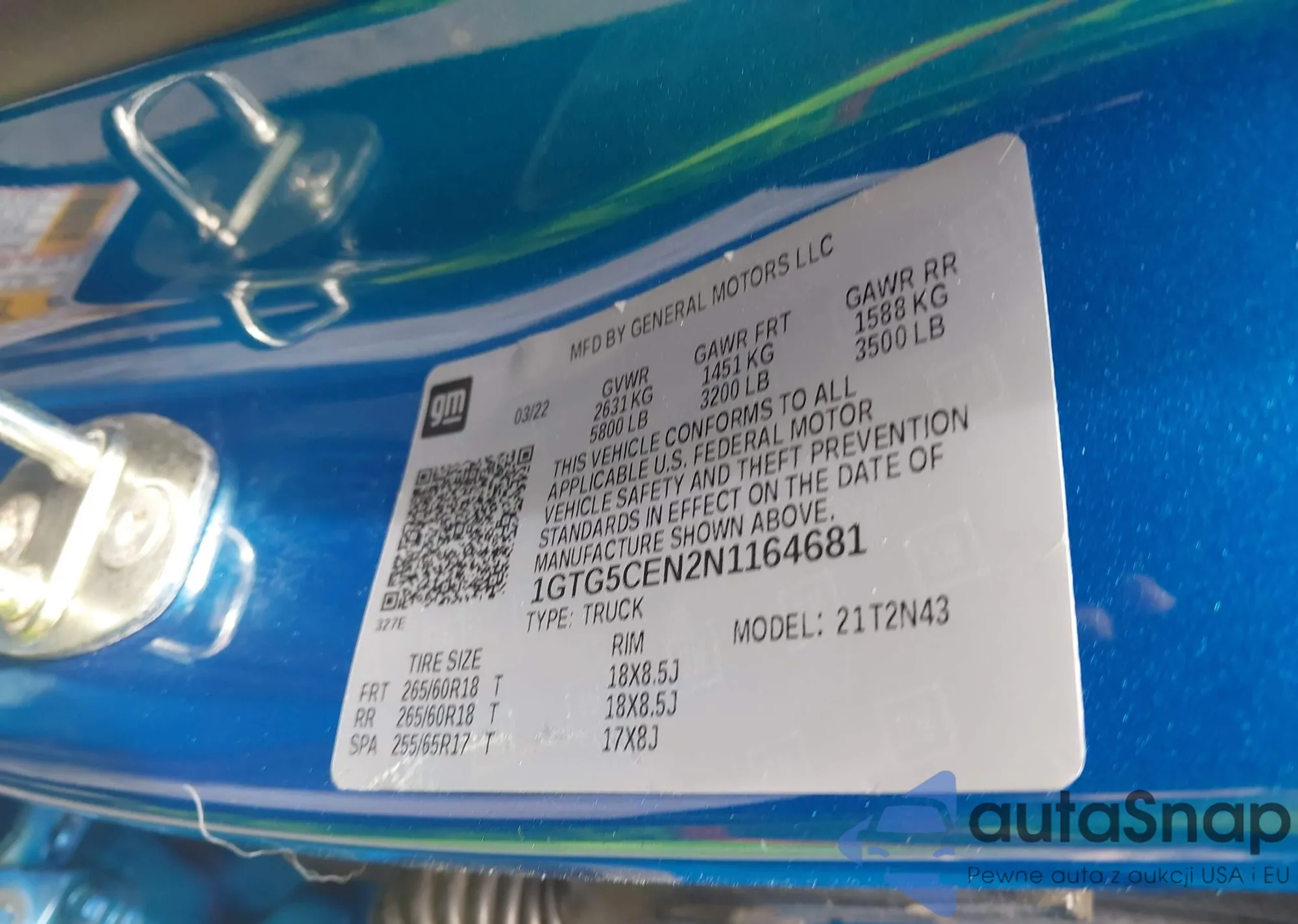 LOT: 42334050 VIN: 1GTG5CEN2N1164681
