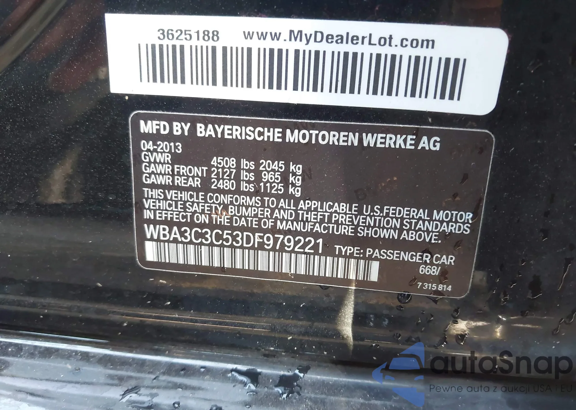 LOT: 42577544 VIN: WBA3C3C53DF979221