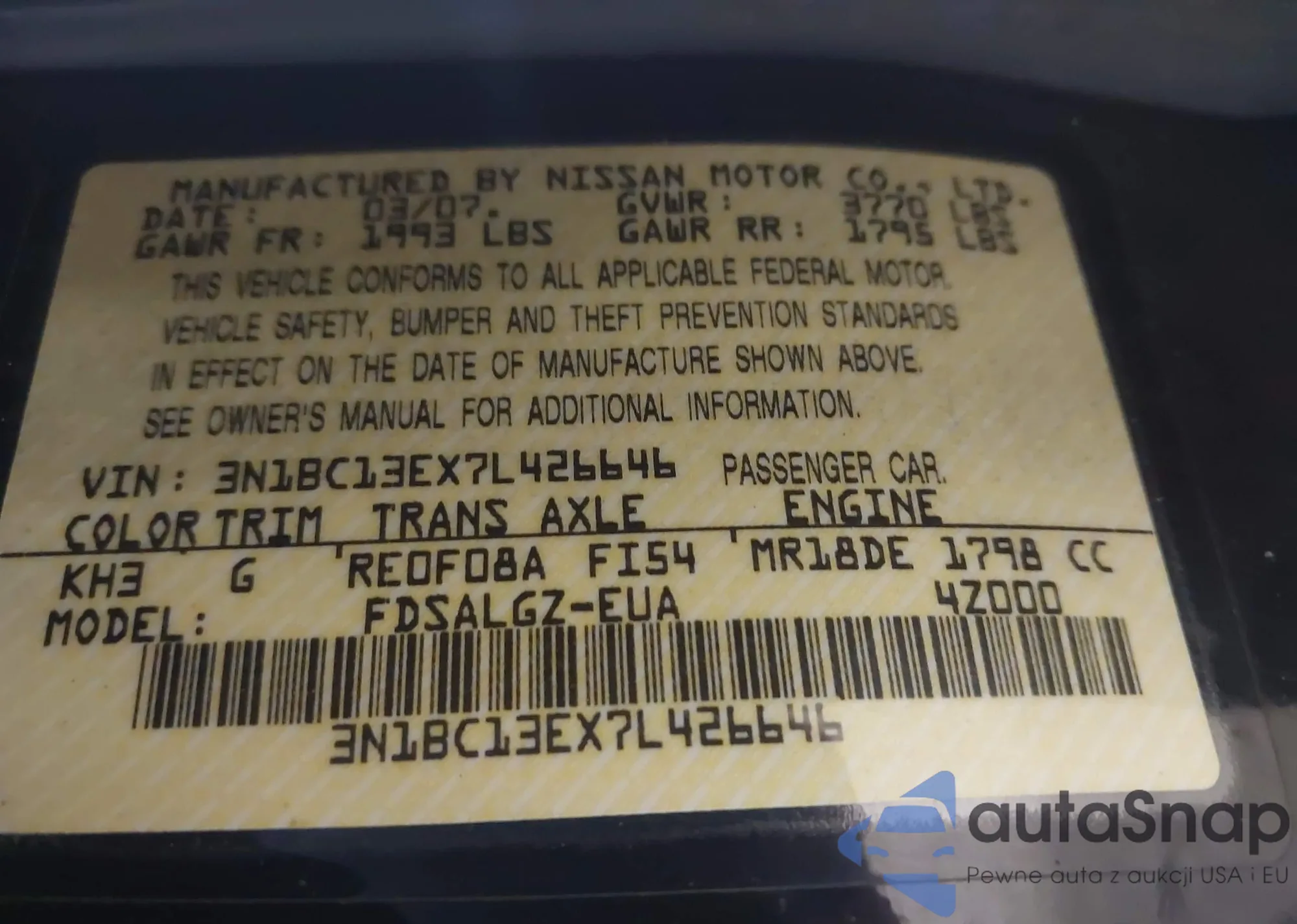 • VIN 3N1BC13EX7L426646