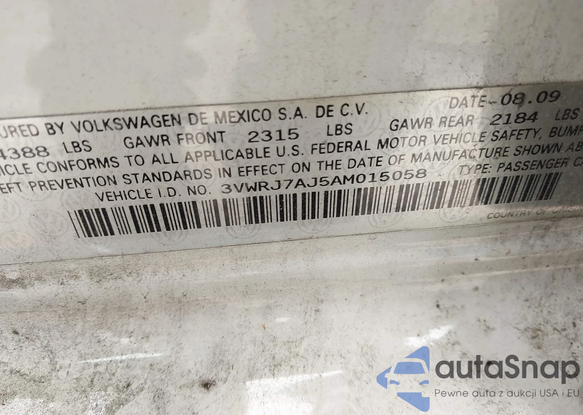 • VIN 3VWRJ7AJ5AM015058