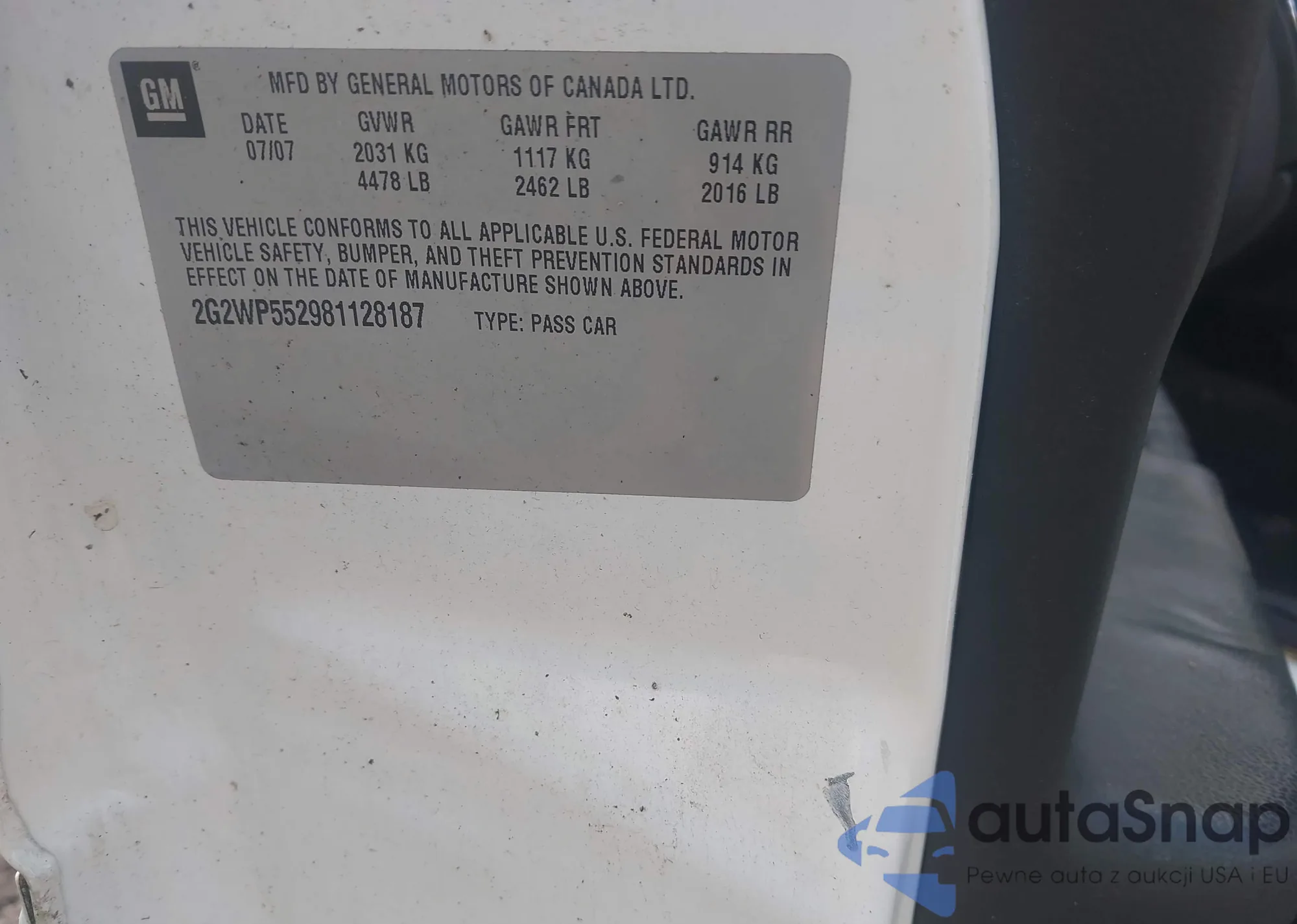 • VIN 2G2WP552981128187