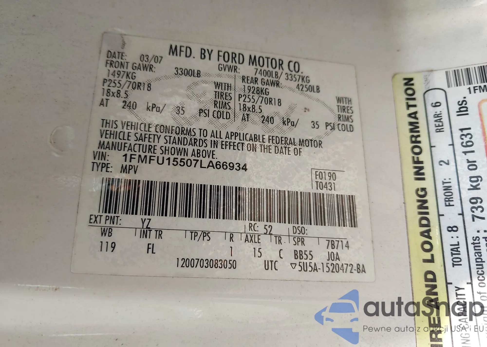LOT: 42580128 VIN: 1G1ZS58F07F244593