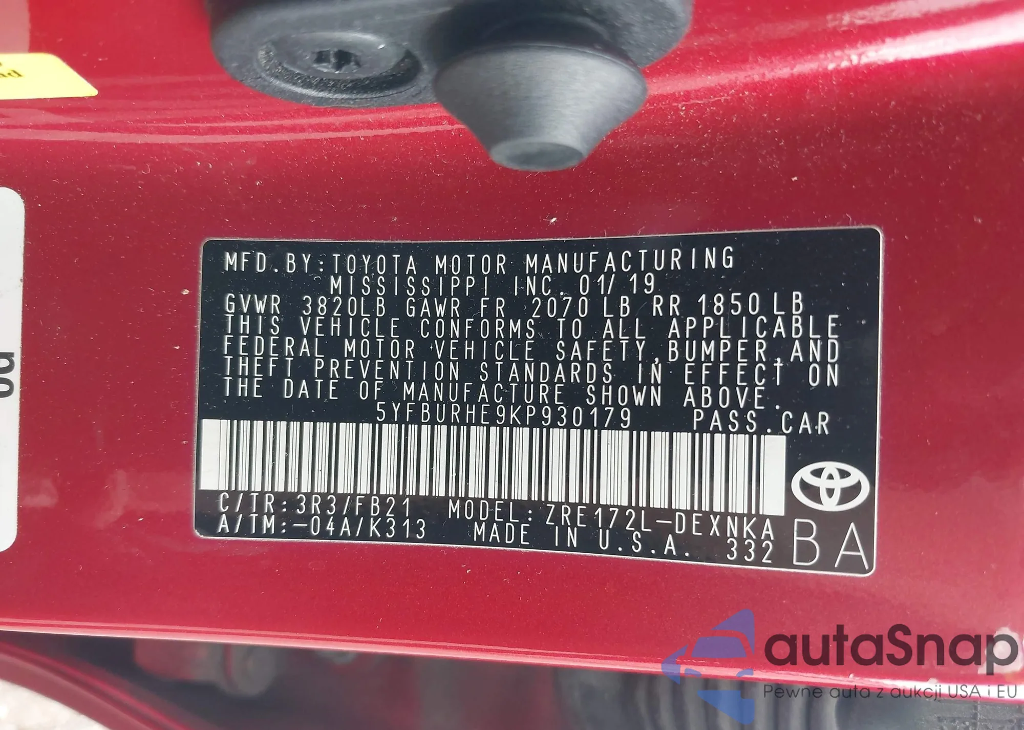 • VIN 5YFBURHE9KP930179