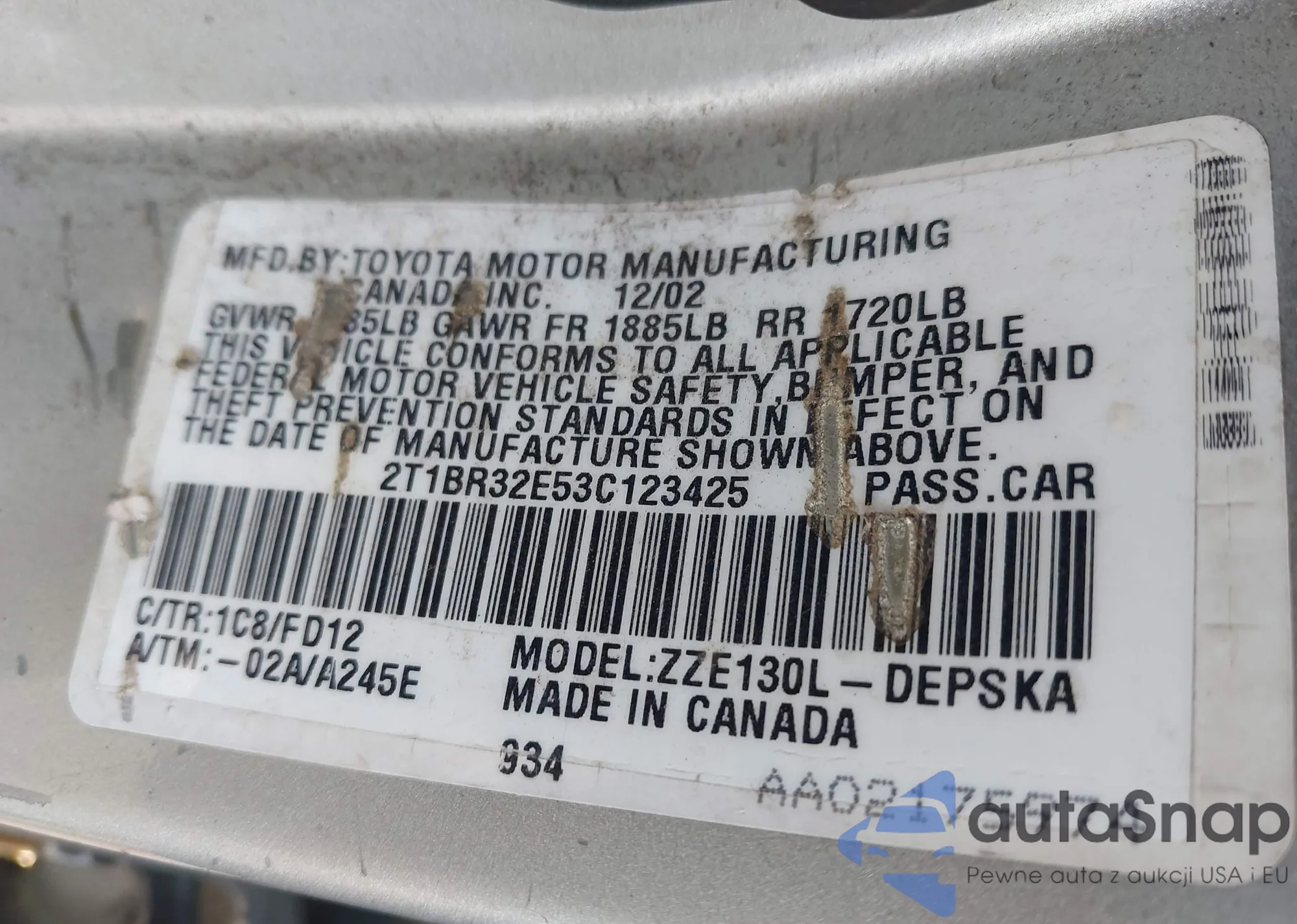 • VIN 2T1BR32E53C123425