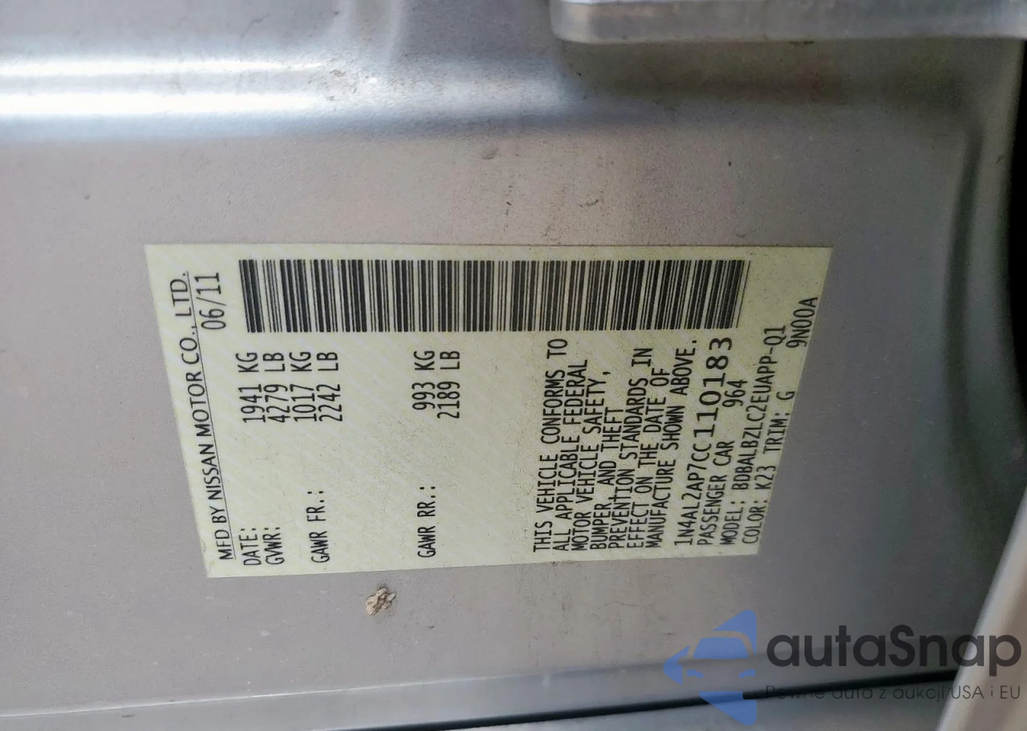 • VIN 1N4AL2AP7CC110183