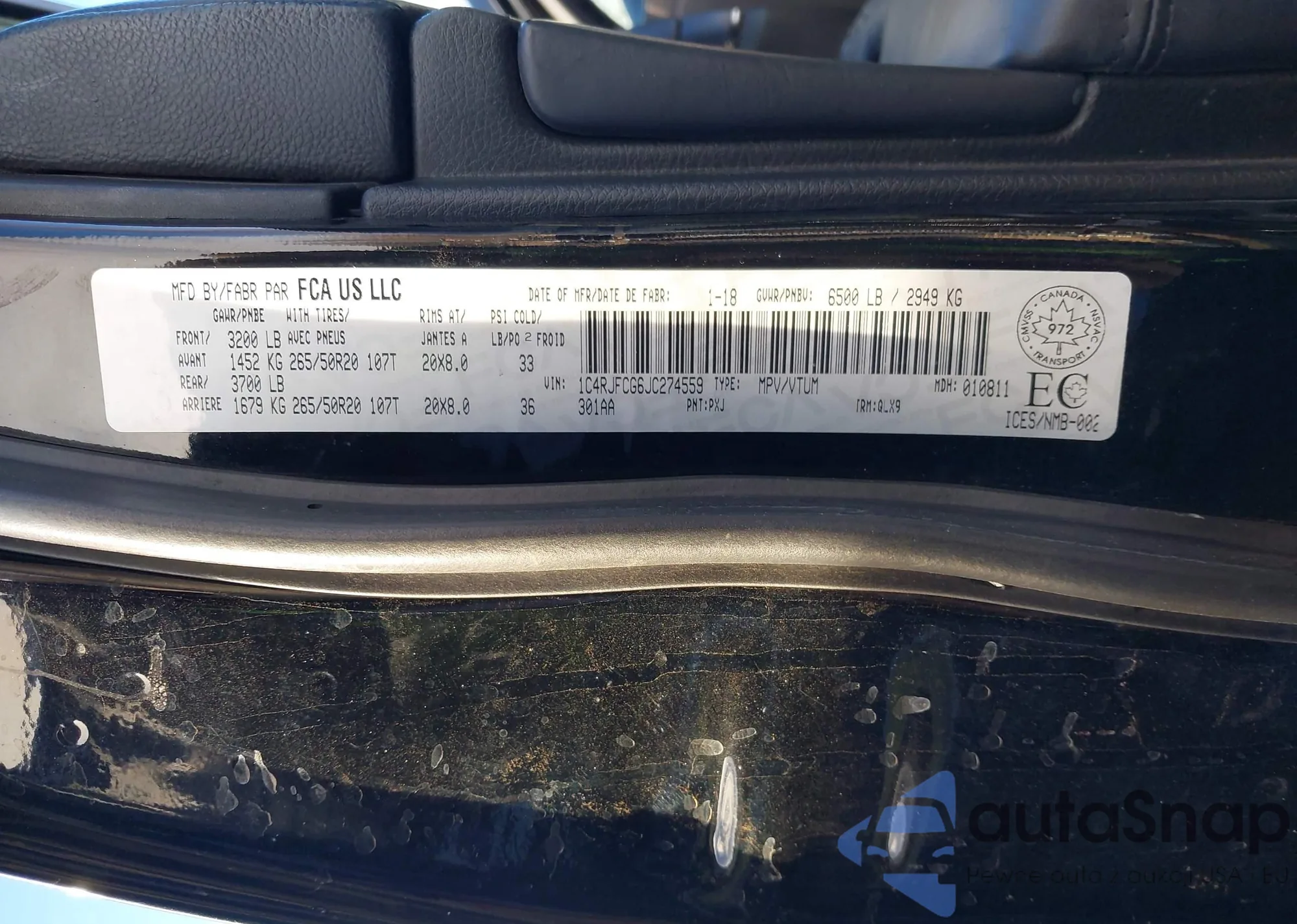 • VIN 1C4RJKAG3M8184546