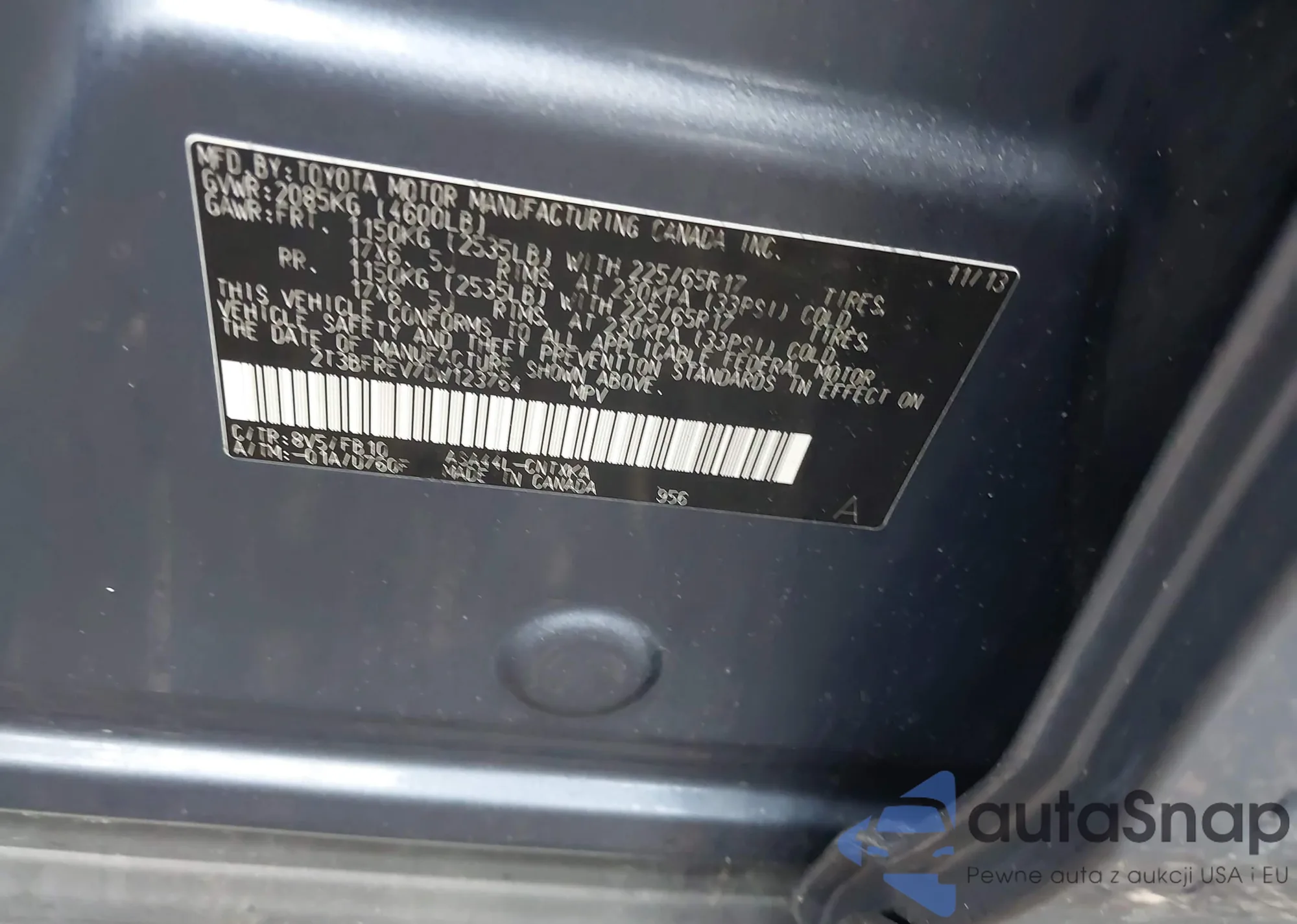 LOT: 42213937 VIN: 2T3BFREV7DW123764