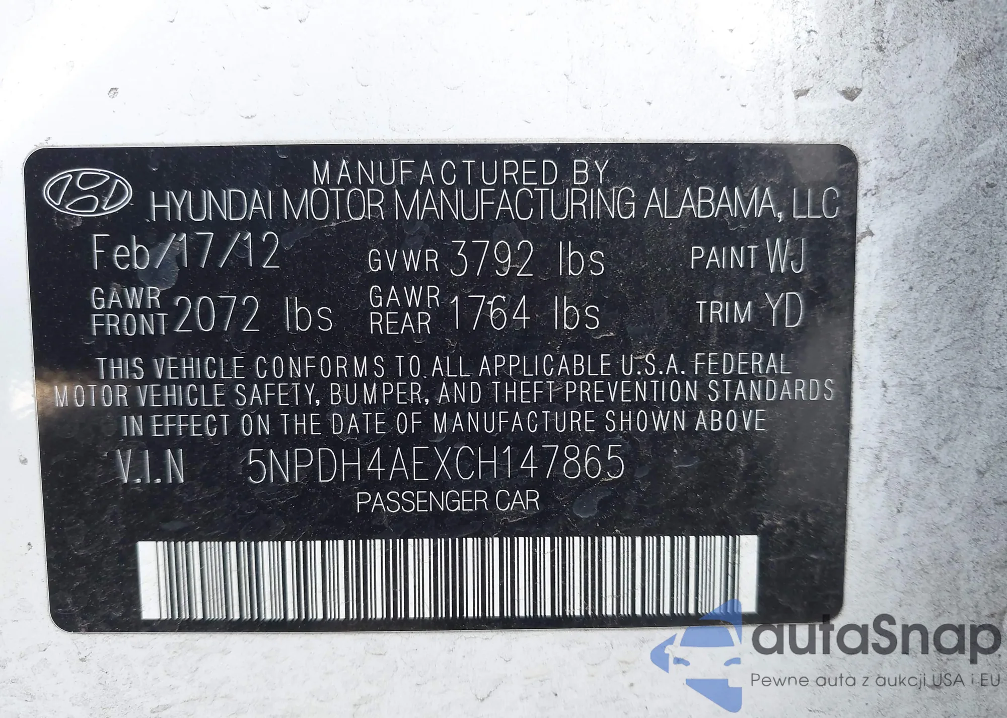 • VIN 5NPDH4AEXCH147865