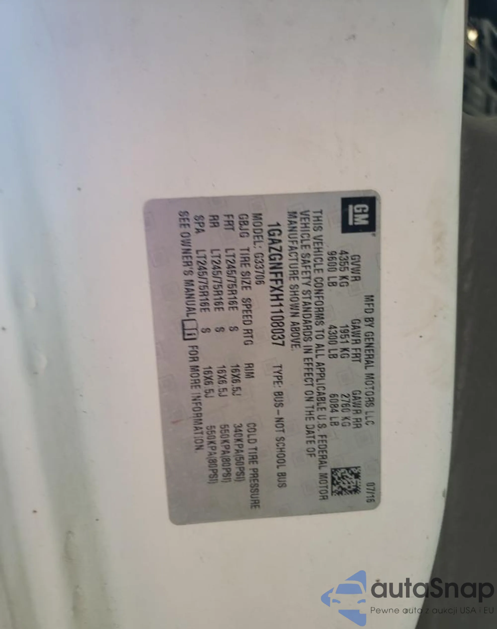 LOT: 62149415 VIN: 1GAZGNFFXH1108037