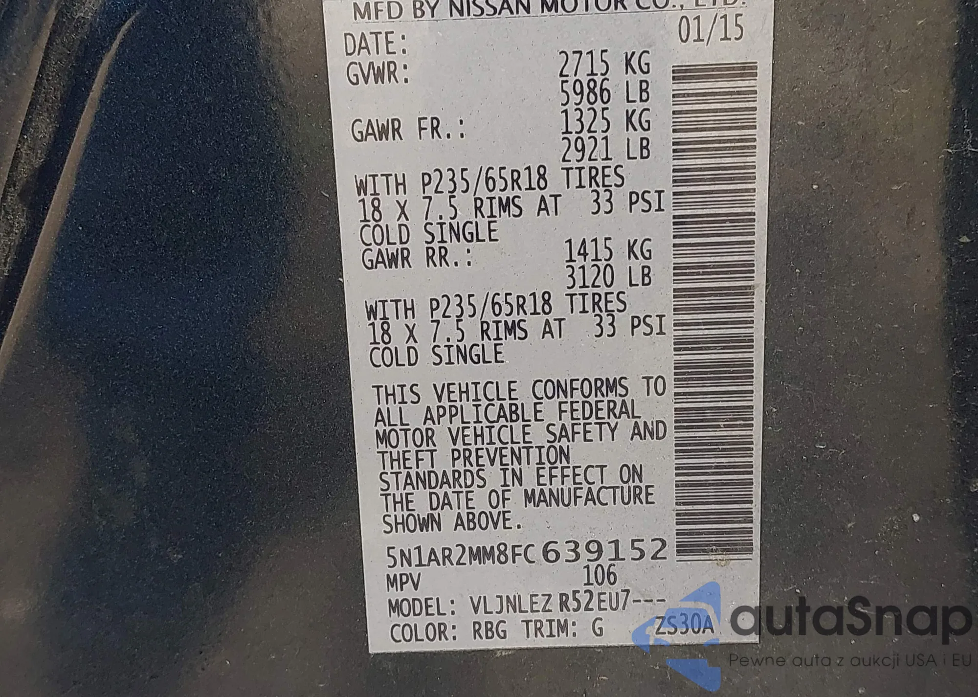 LOT: 42234967 VIN: 5N1AR2MM8FC639152