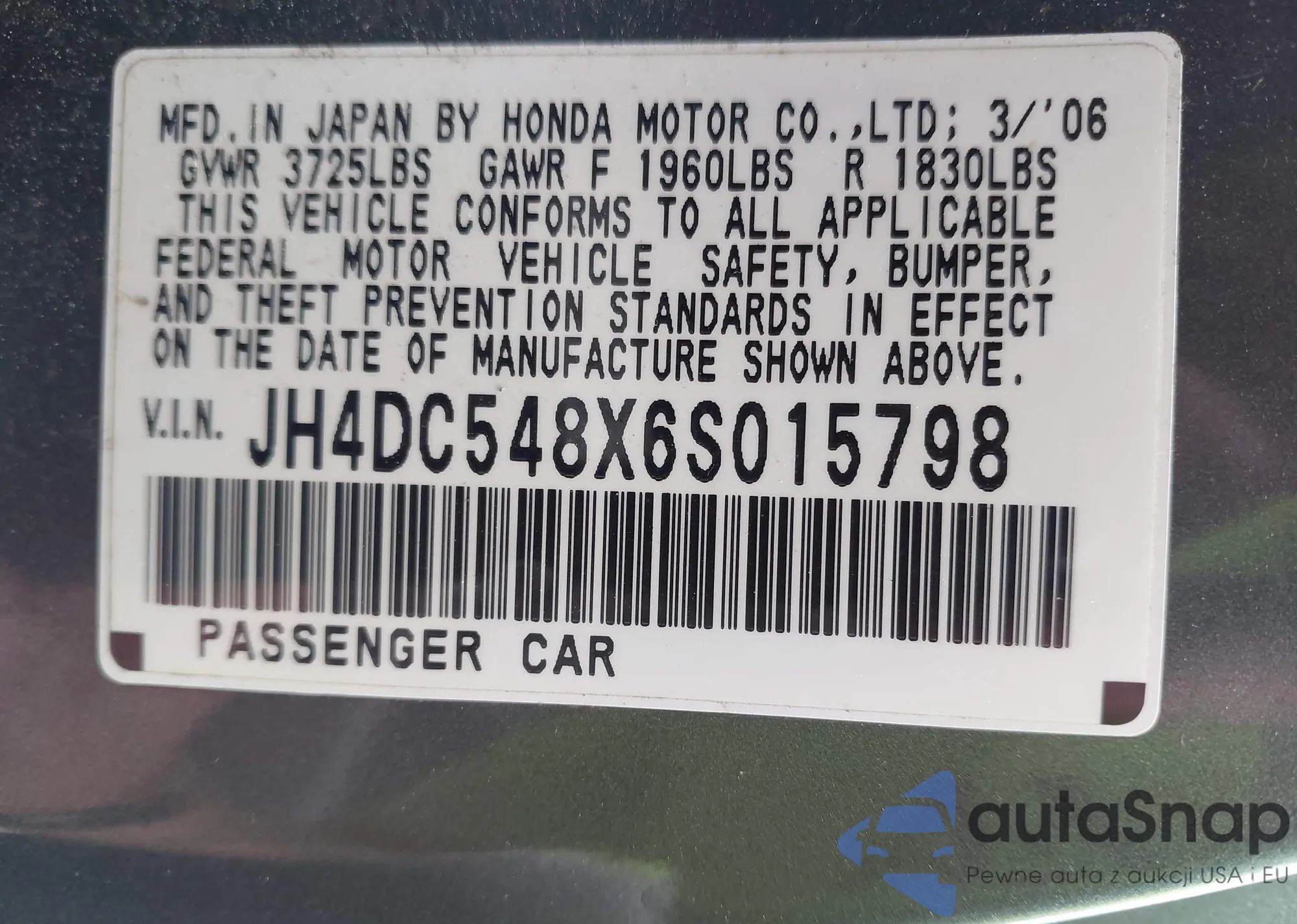 • VIN JH4DC548X6S015798