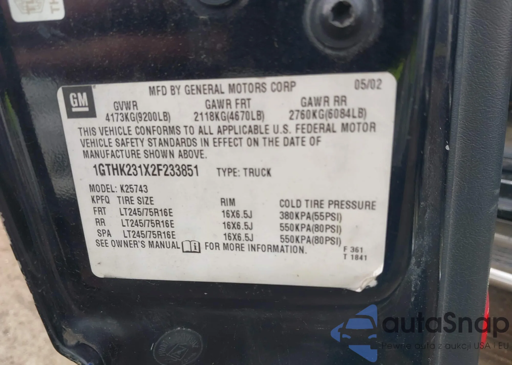 • VIN 1GTHK231X2F233851