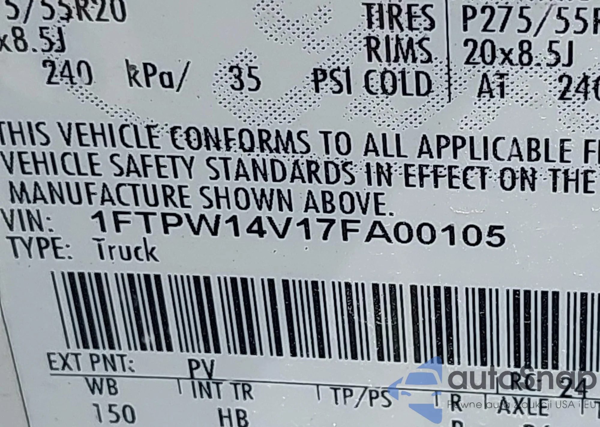 LOT: 42467716 VIN: 1FTPW14V17FA00105