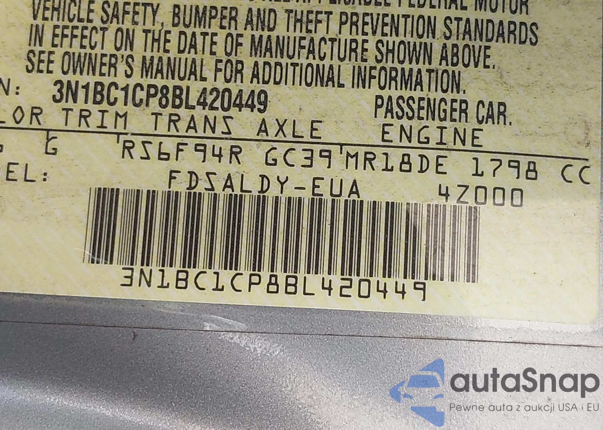• VIN 3N1BC1CP8BL420449