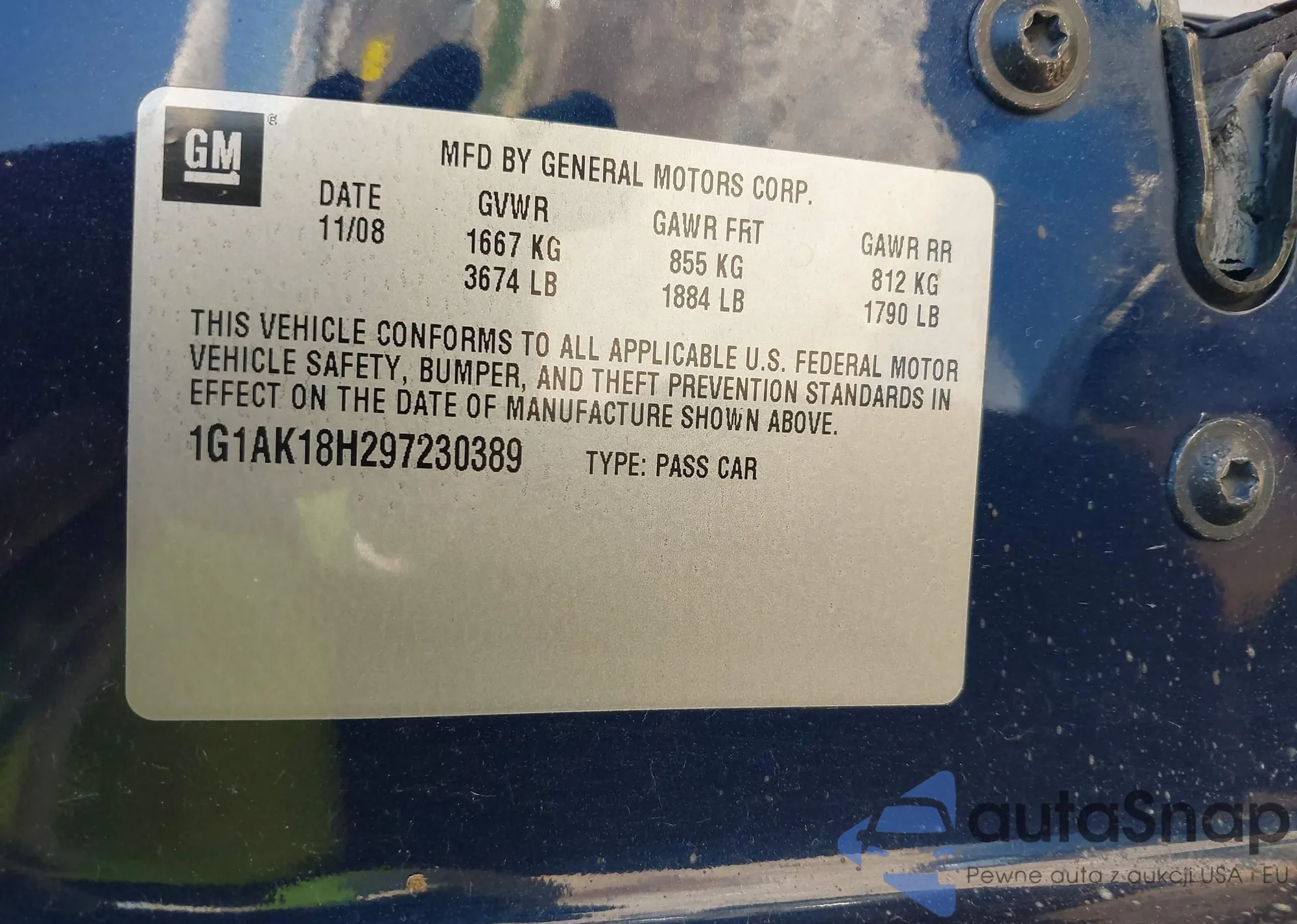 LOT: 42628644 VIN: 1G1AK18H297230389