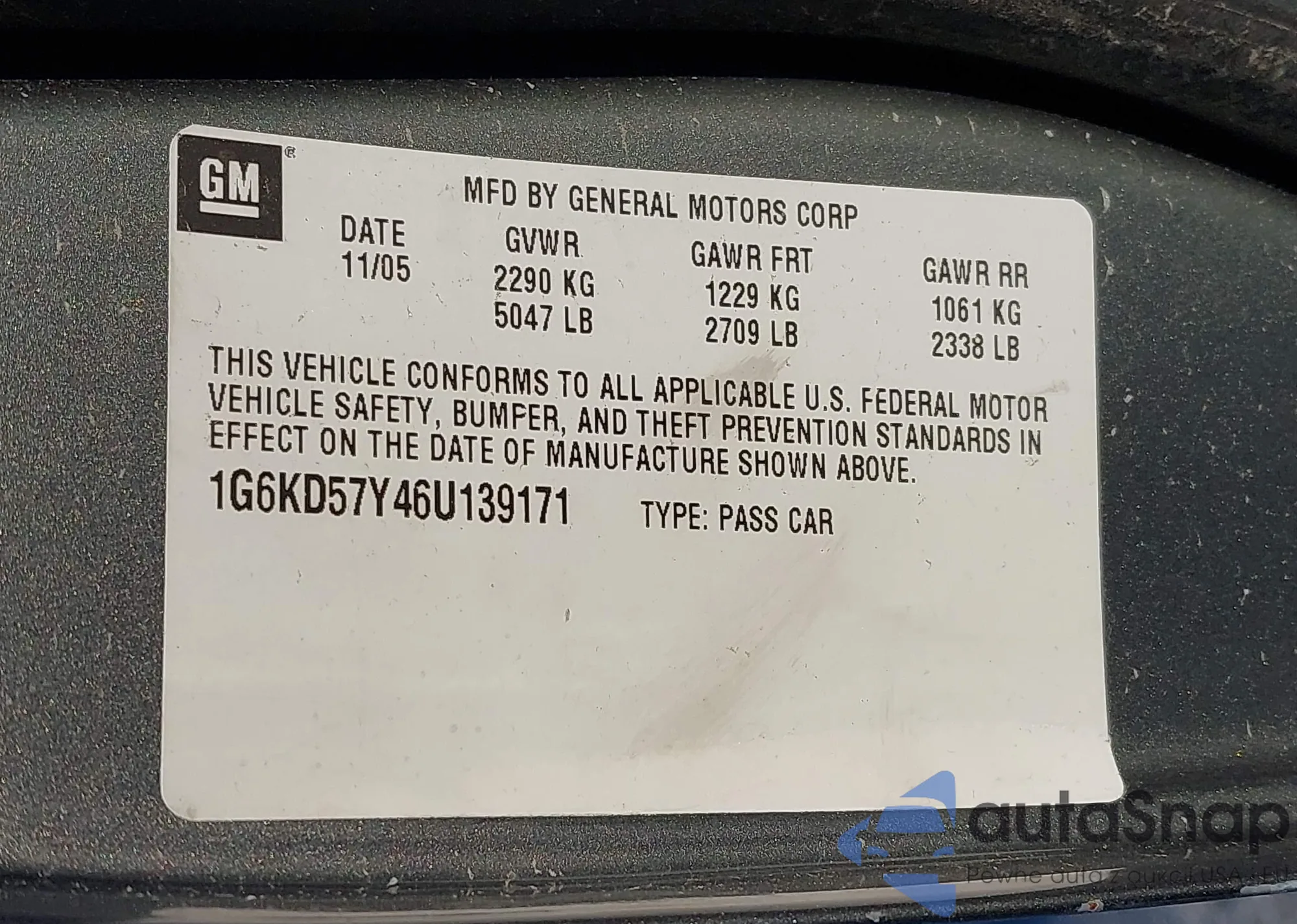 • VIN 1G6KD57Y46U139171