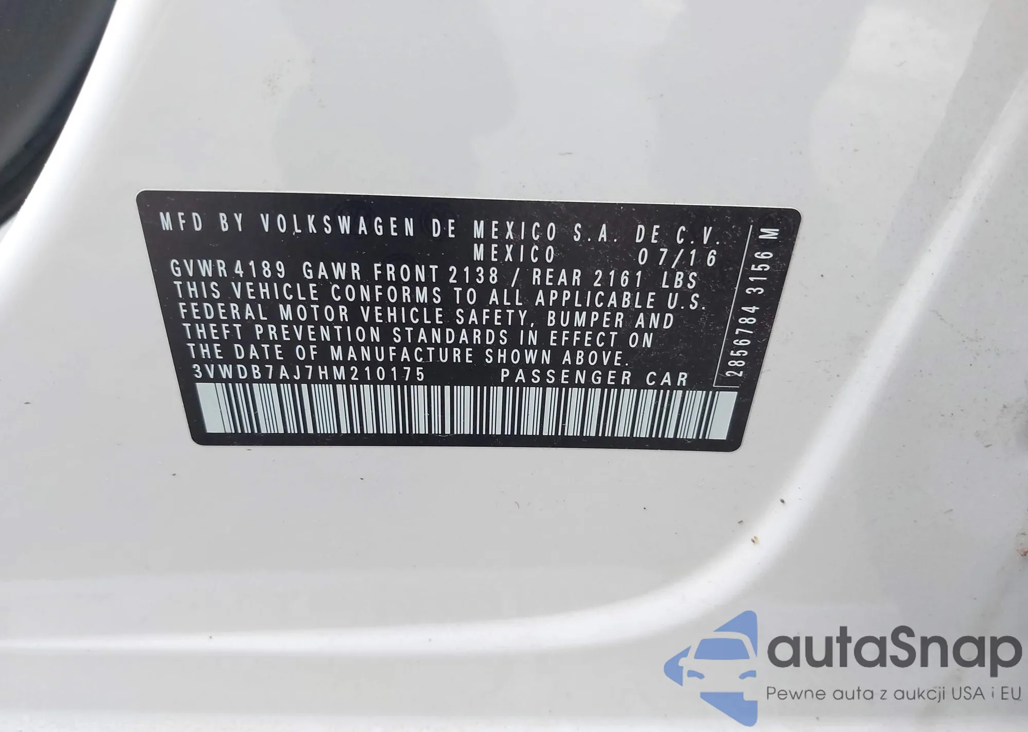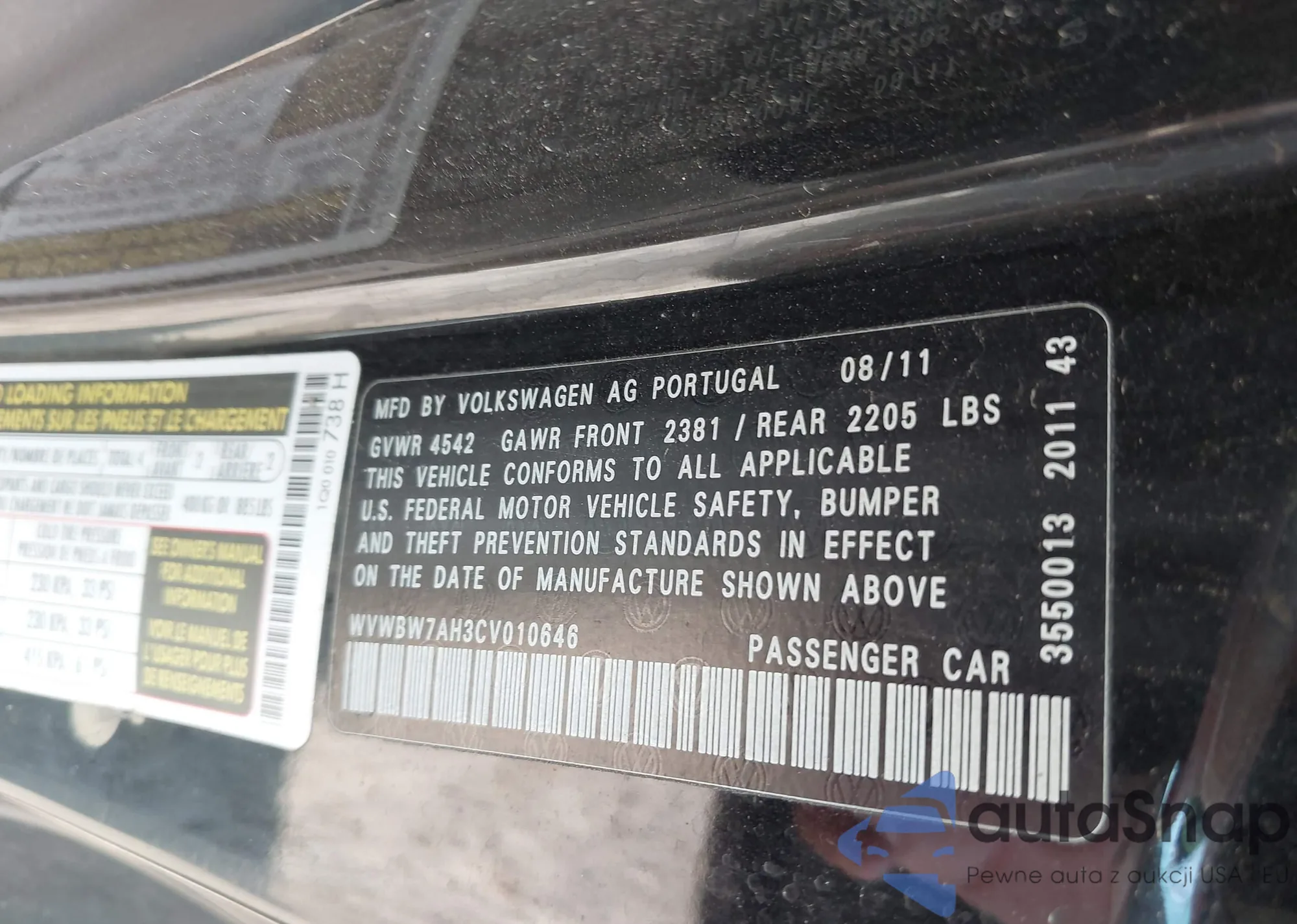 • VIN WVWBW7AH3CV010646